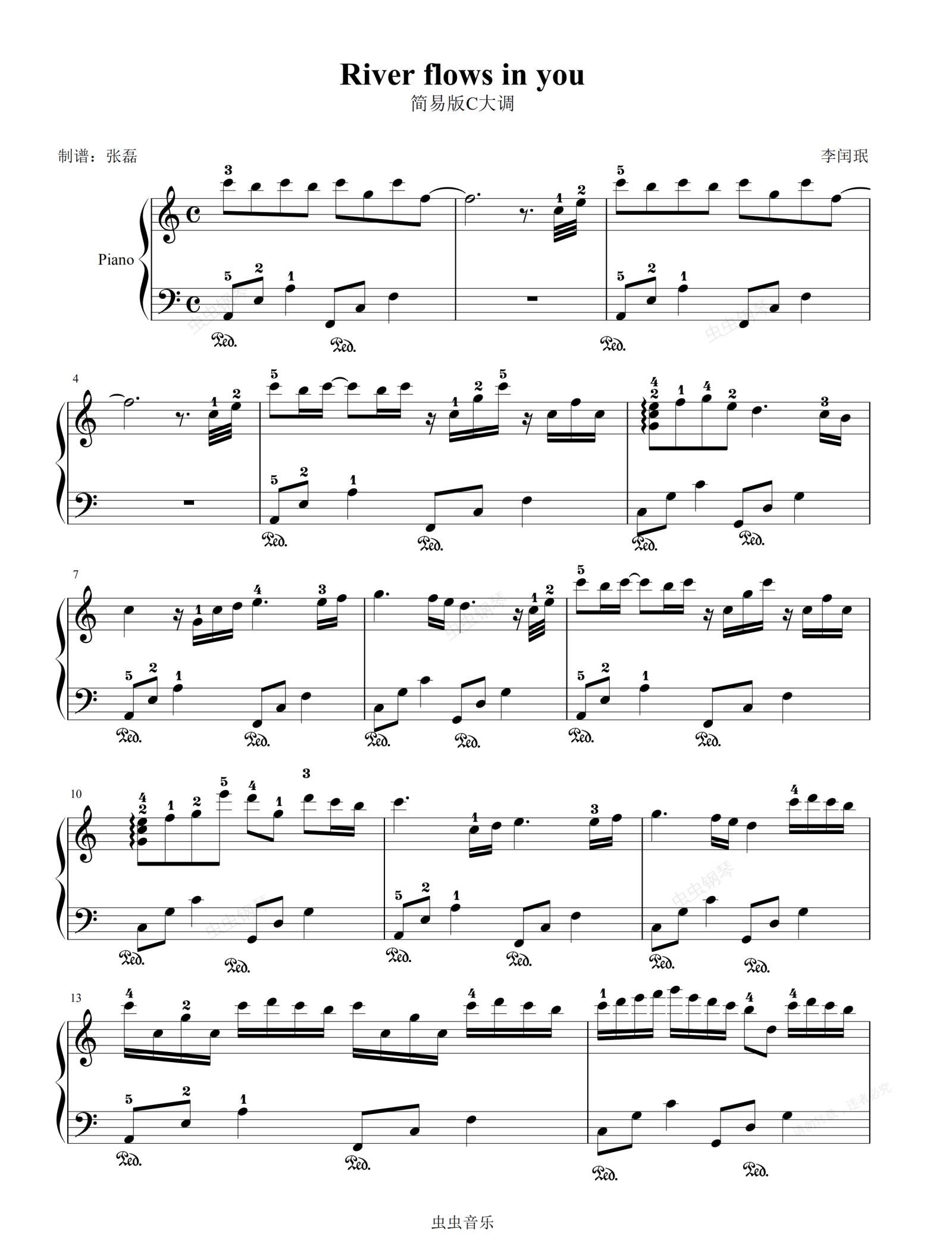 钢琴谱:River flows in you--李闰珉--简易C大调