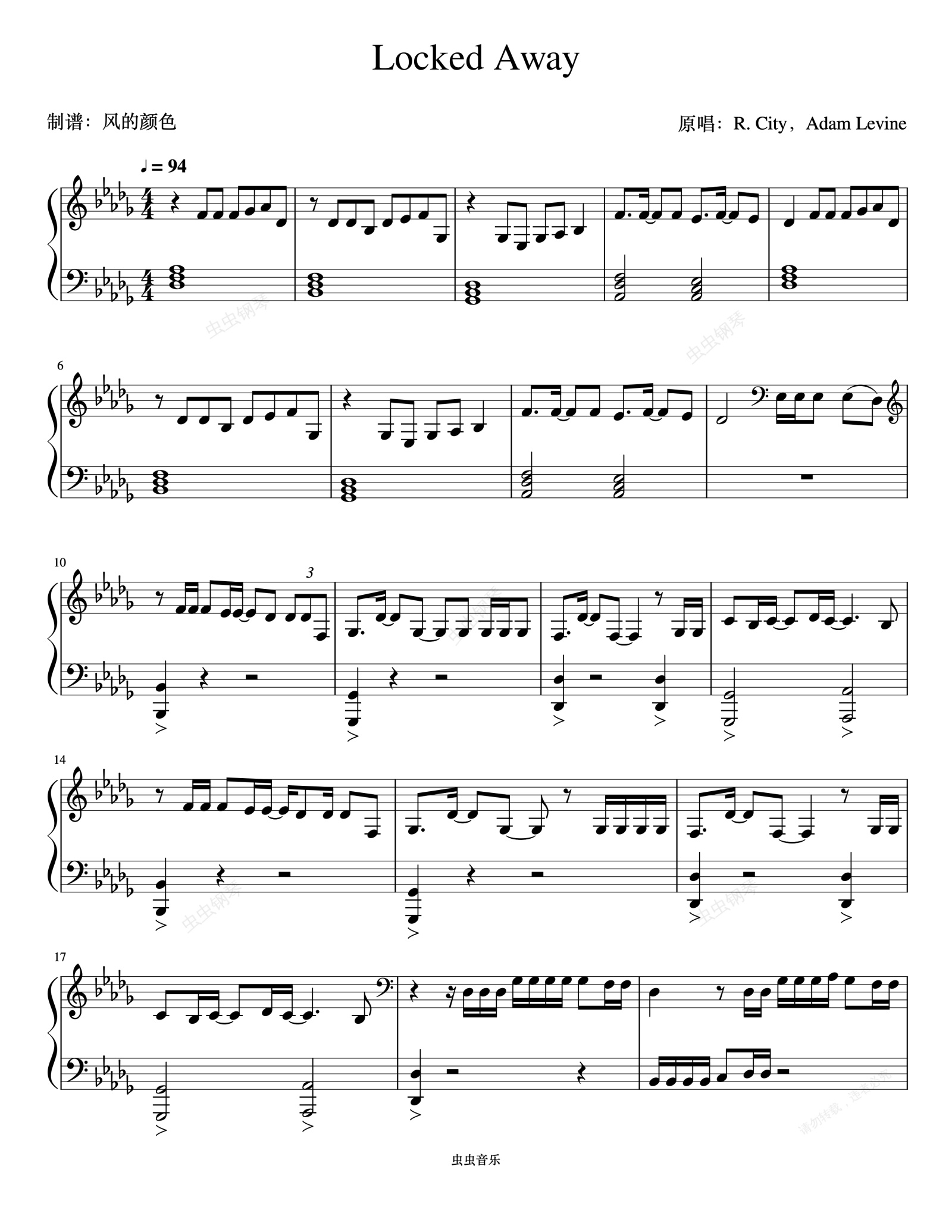 钢琴谱:《Locked Away》(轻快旋律)
