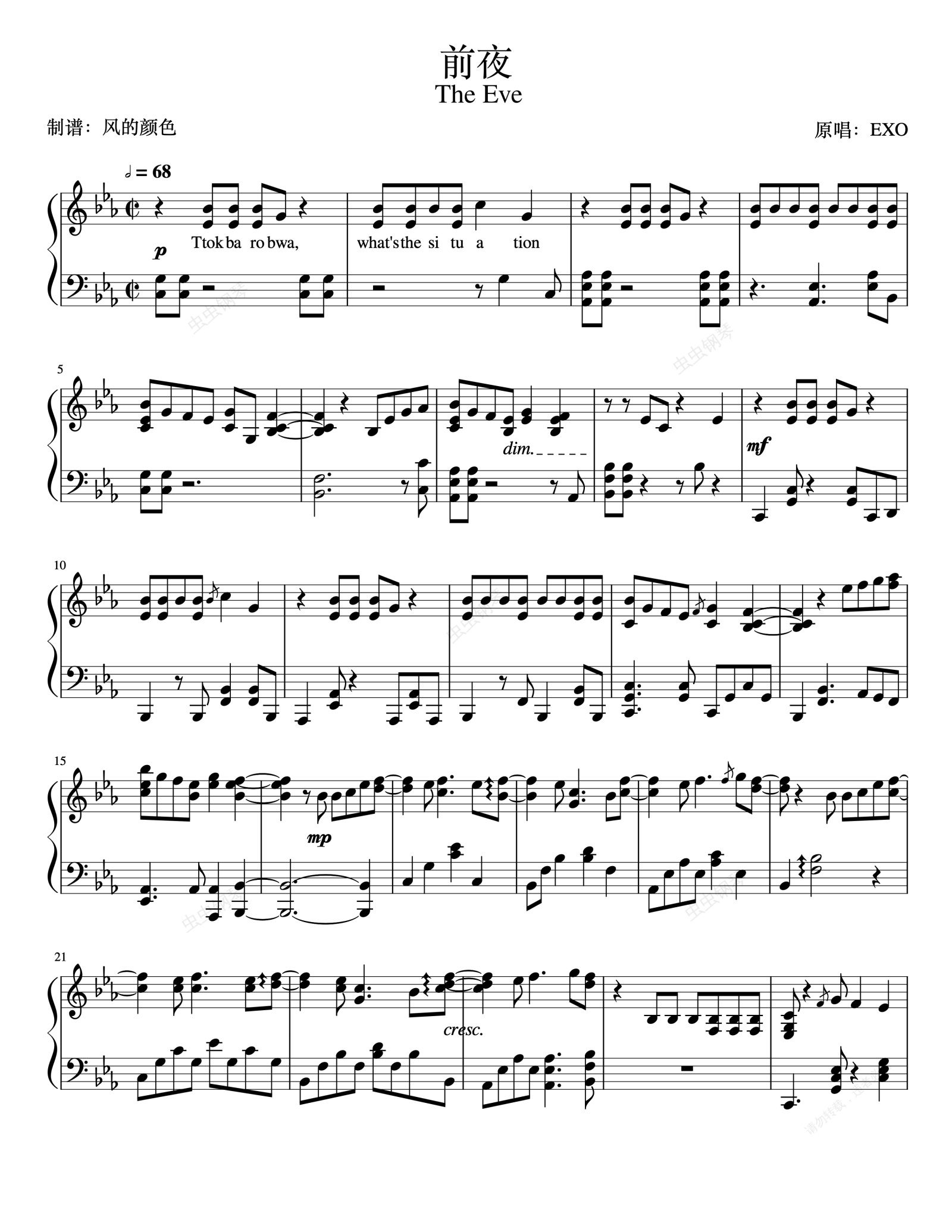 钢琴谱:《前夜》EXO热门单曲(青2《破风》原唱)