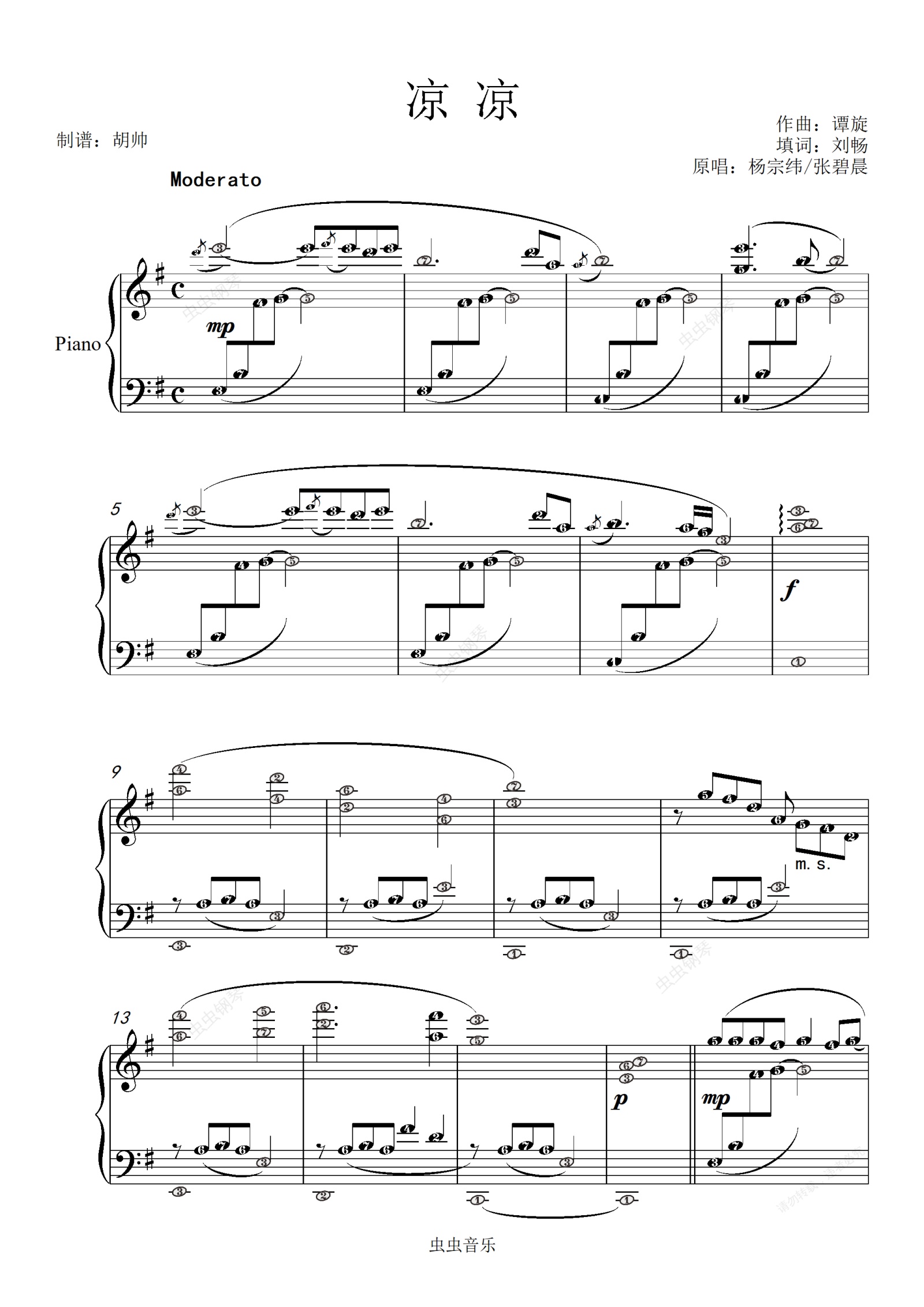 钢琴谱:凉凉【简五谱】