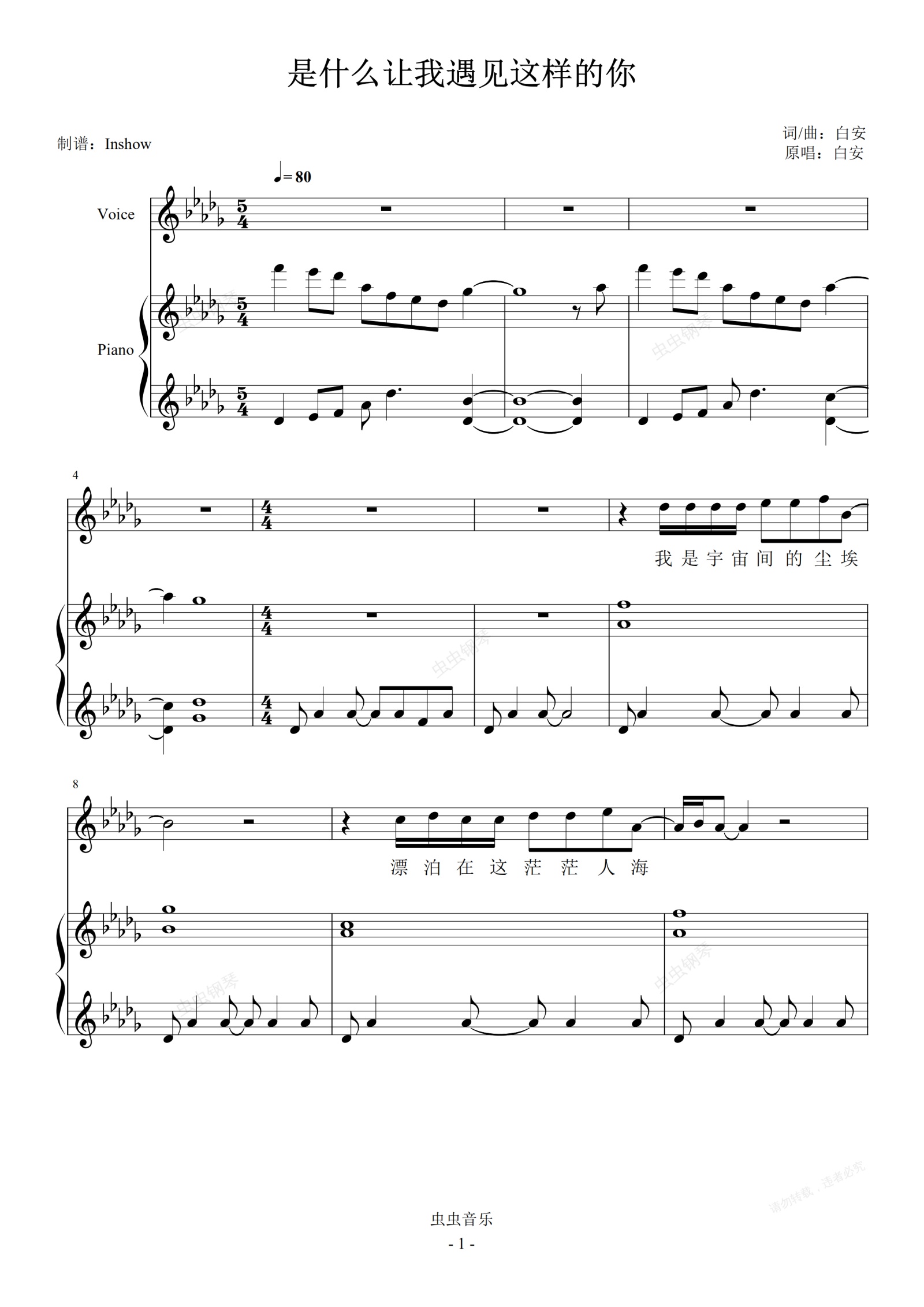 钢琴谱:白安 - 是什么让我遇见这样的你【弹唱谱】