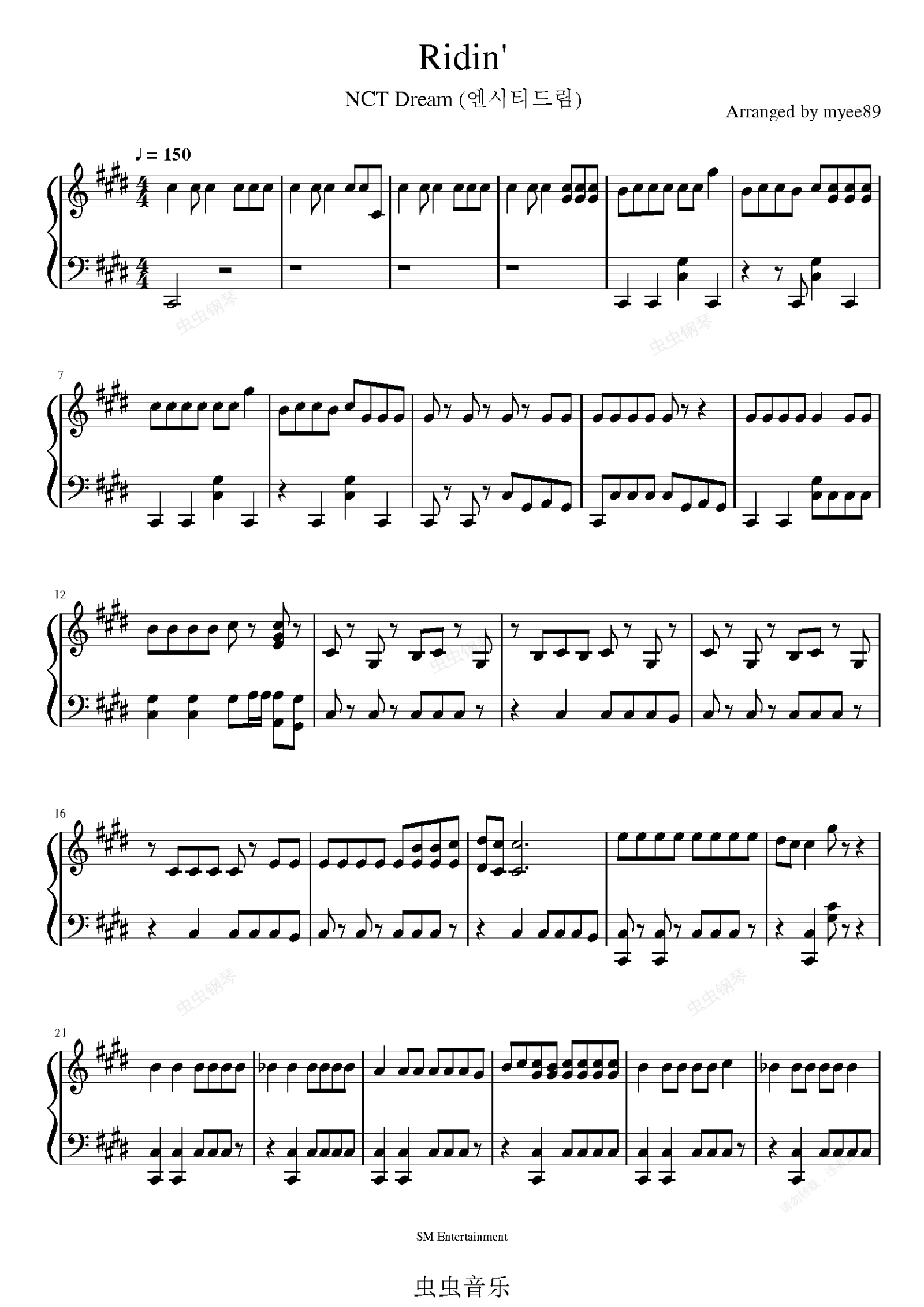 钢琴谱:NCT Dream - Ridin' 钢琴谱