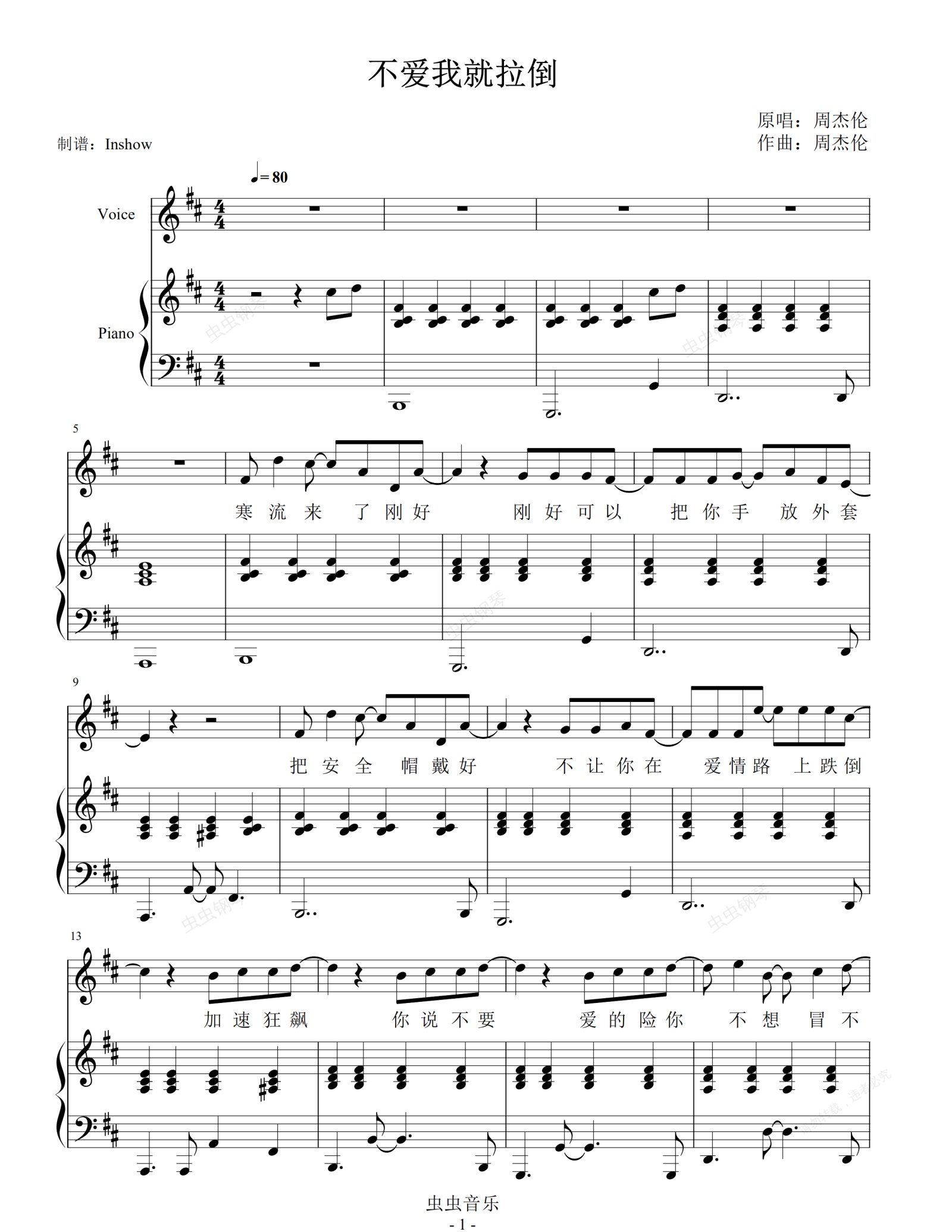 钢琴谱:周杰伦 - 不爱我就拉倒【弹唱谱】