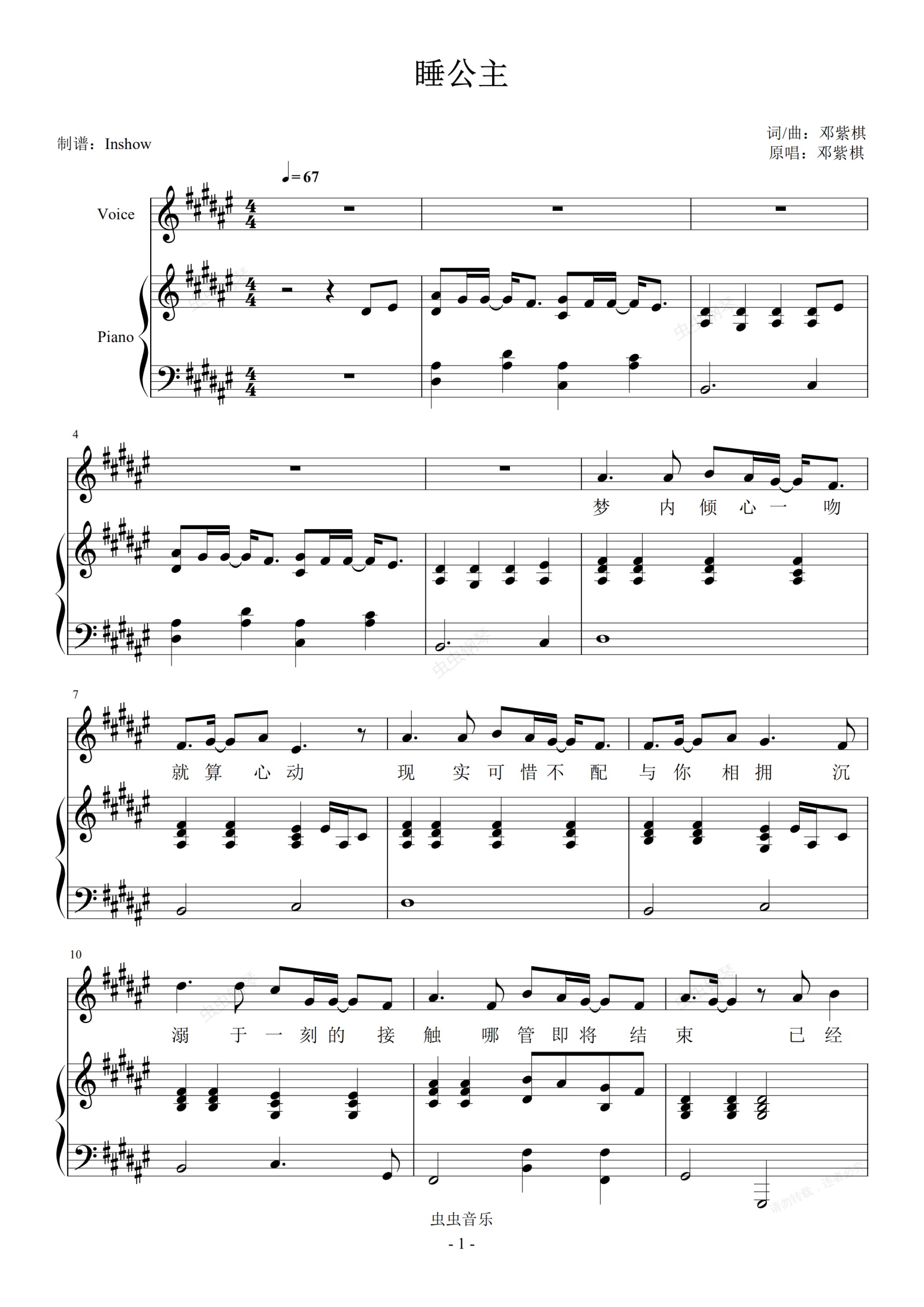 钢琴谱:G.E.M.邓紫棋 - 睡公主【弹唱谱】