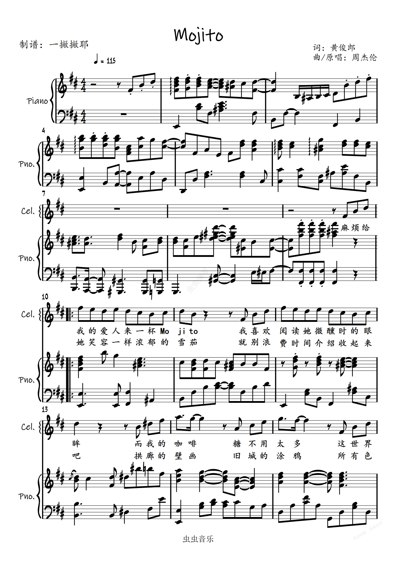 钢琴谱:Mojito【升调版弹唱谱】周杰伦「一撇撇耶」