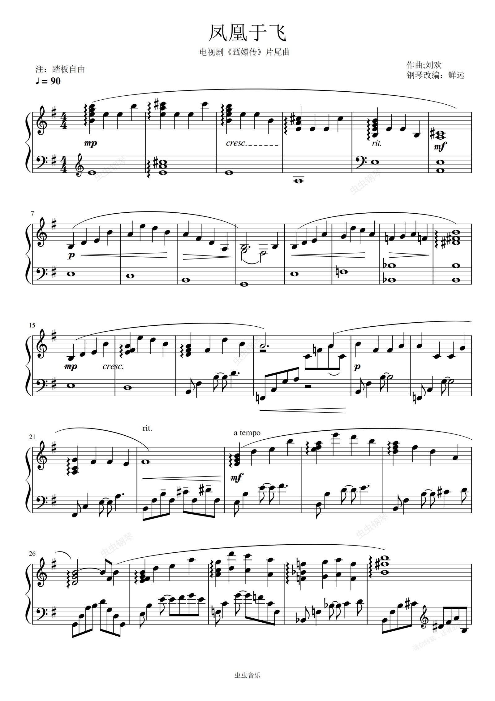 钢琴谱:凤凰于飞--钢琴版 电视剧《甄嬛传》片尾曲