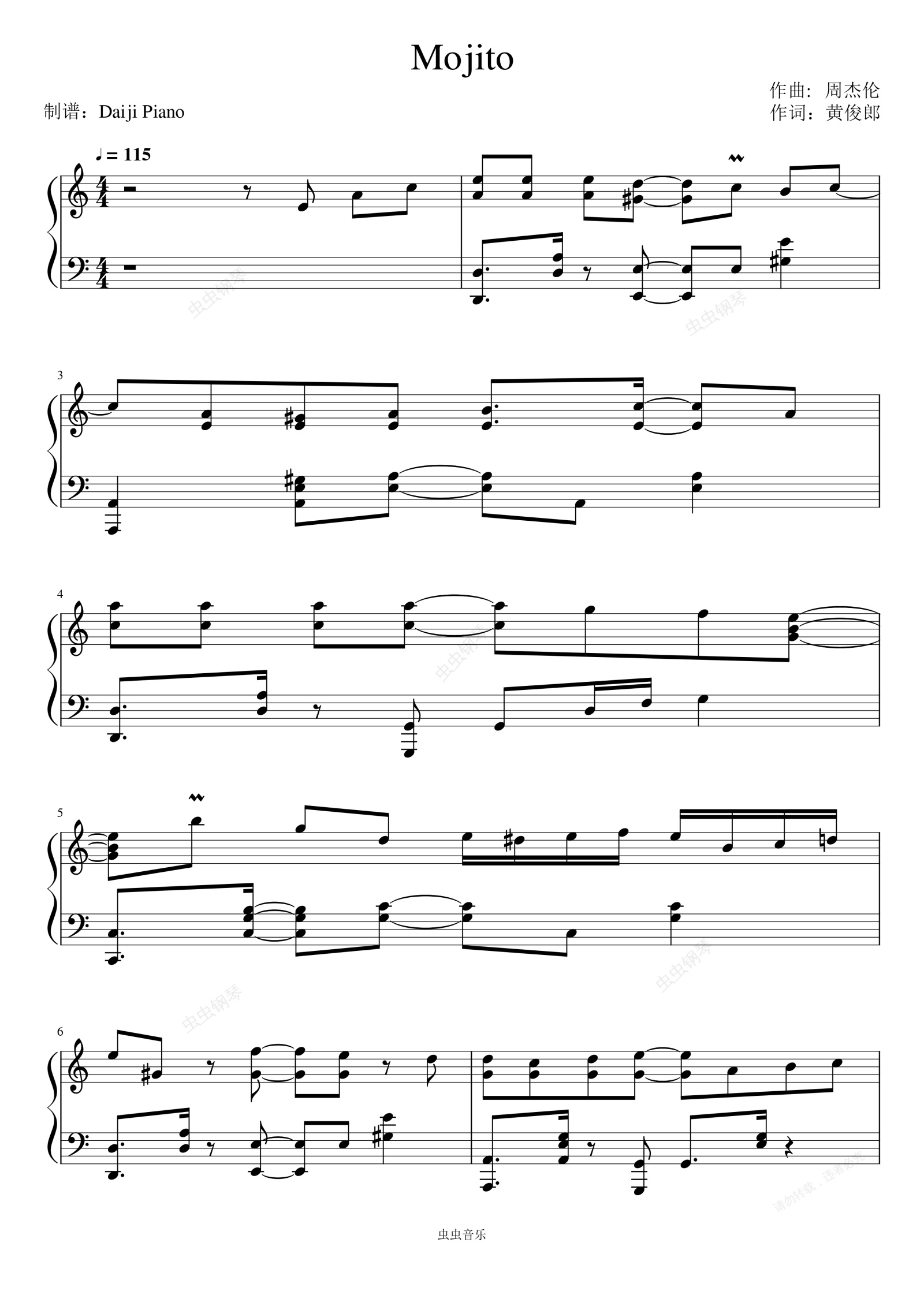 钢琴谱:周杰伦【mojito】钢琴华丽独奏版-拉丁风格