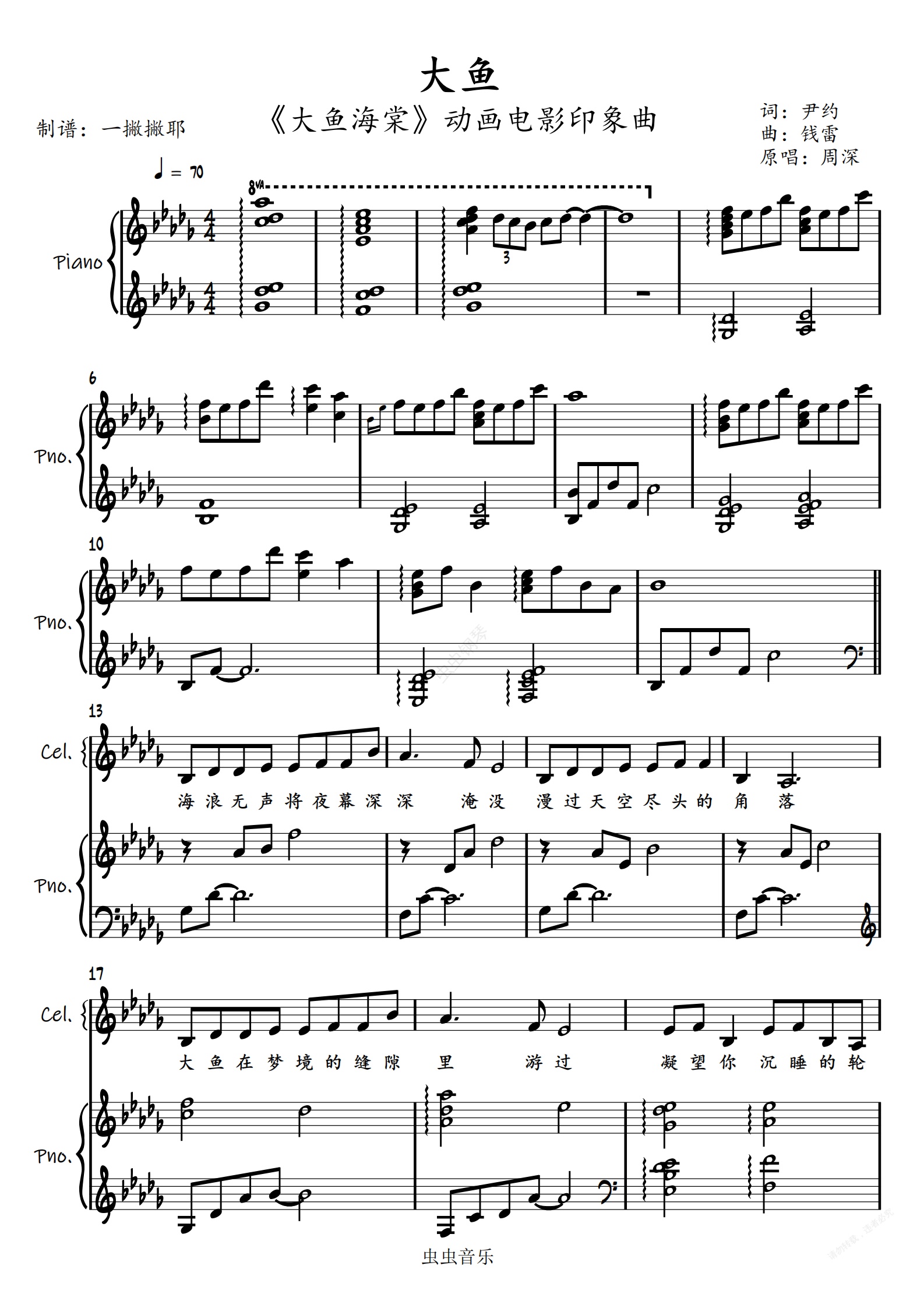 钢琴谱:大鱼【弹唱谱】周深《大鱼海棠》「一撇撇耶」
