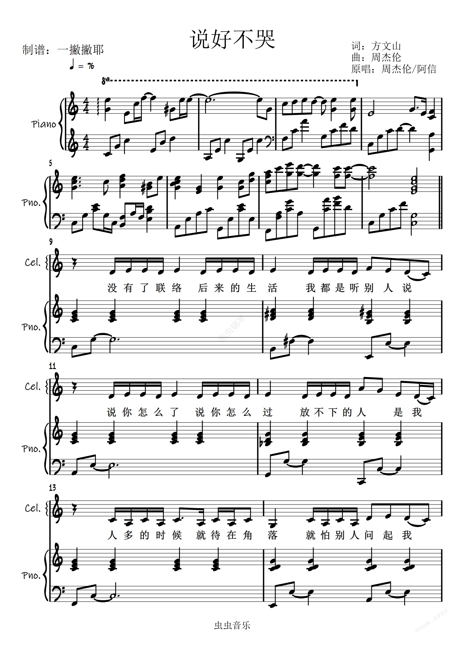 钢琴谱:说好不哭【C调弹唱谱】周杰伦/阿信「一撇撇耶」