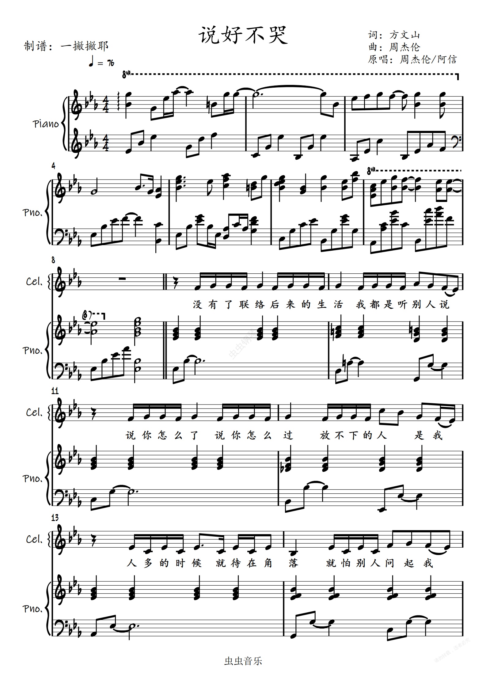 钢琴谱:【女版弹唱】说好不哭-周杰伦/阿信「一撇撇耶」