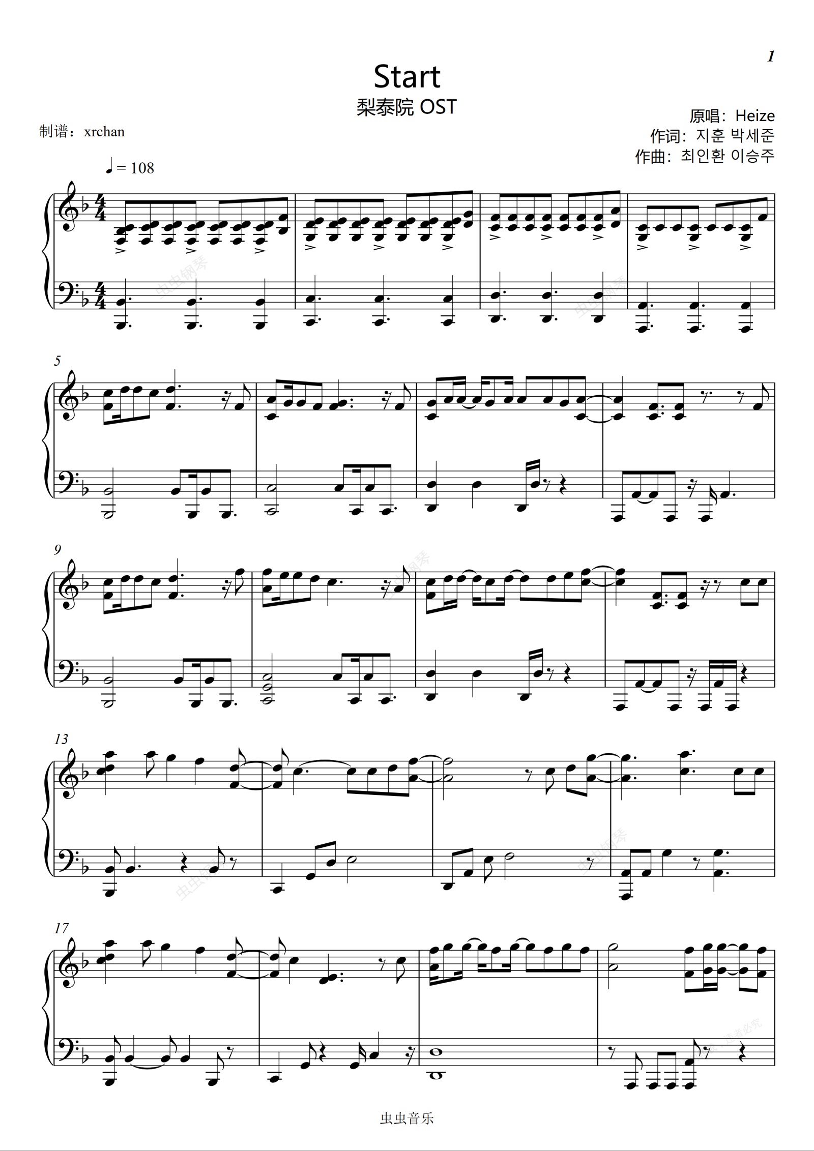 钢琴谱:梨泰院 Start