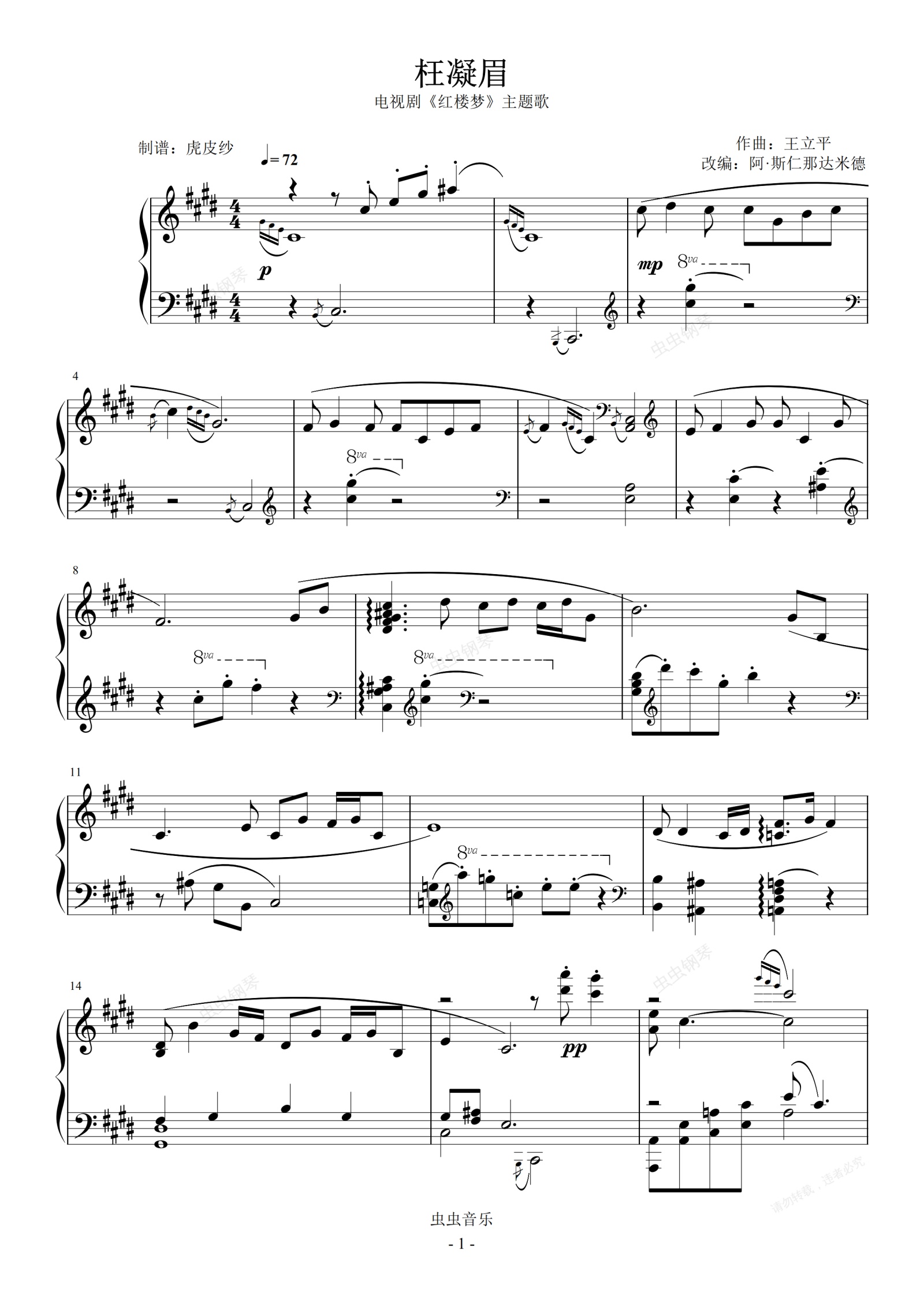 钢琴谱:《红楼梦》主题歌《枉凝眉》