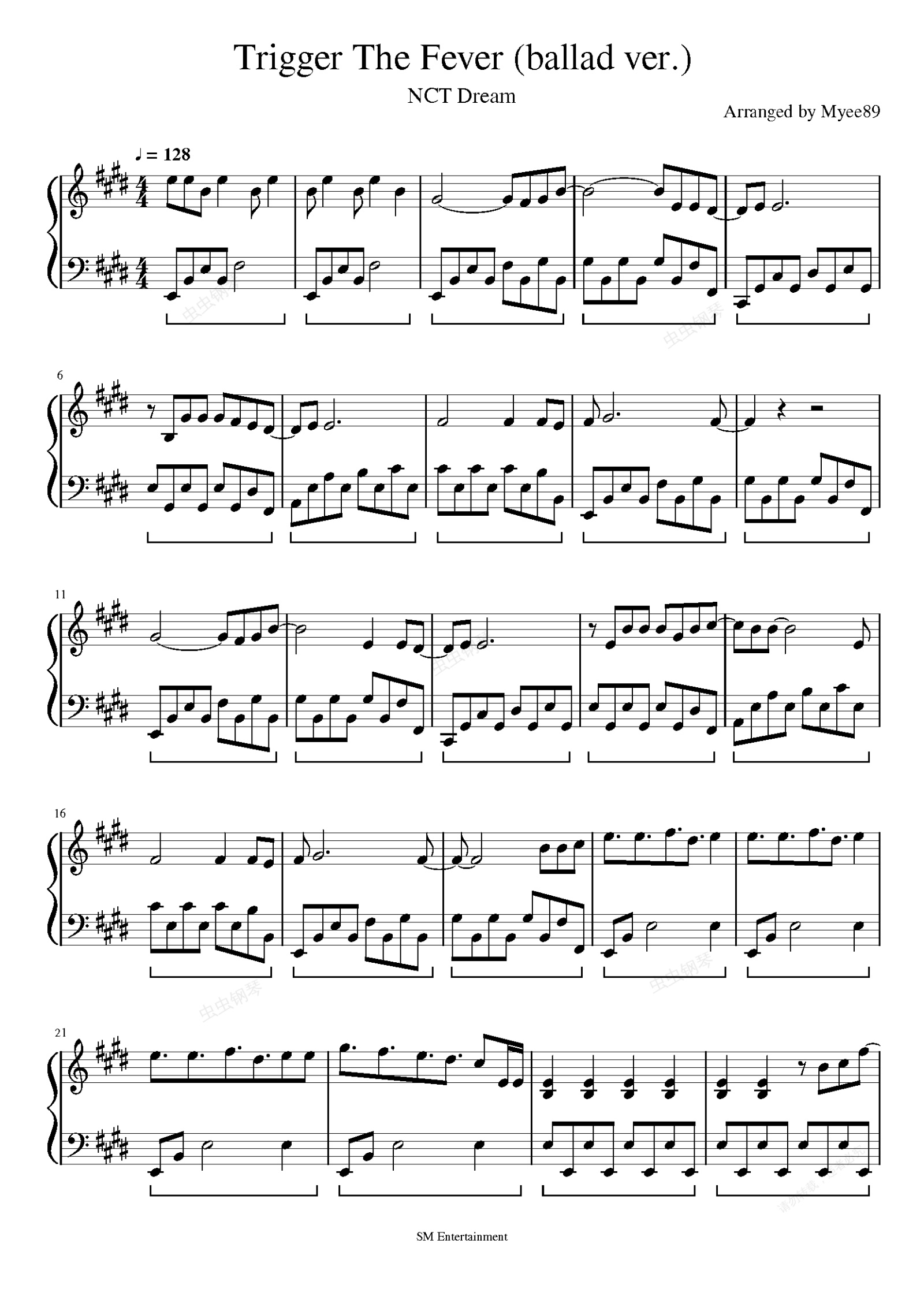 钢琴谱:NCT Dream - Trigger The Fever (抒情版.) 钢琴谱