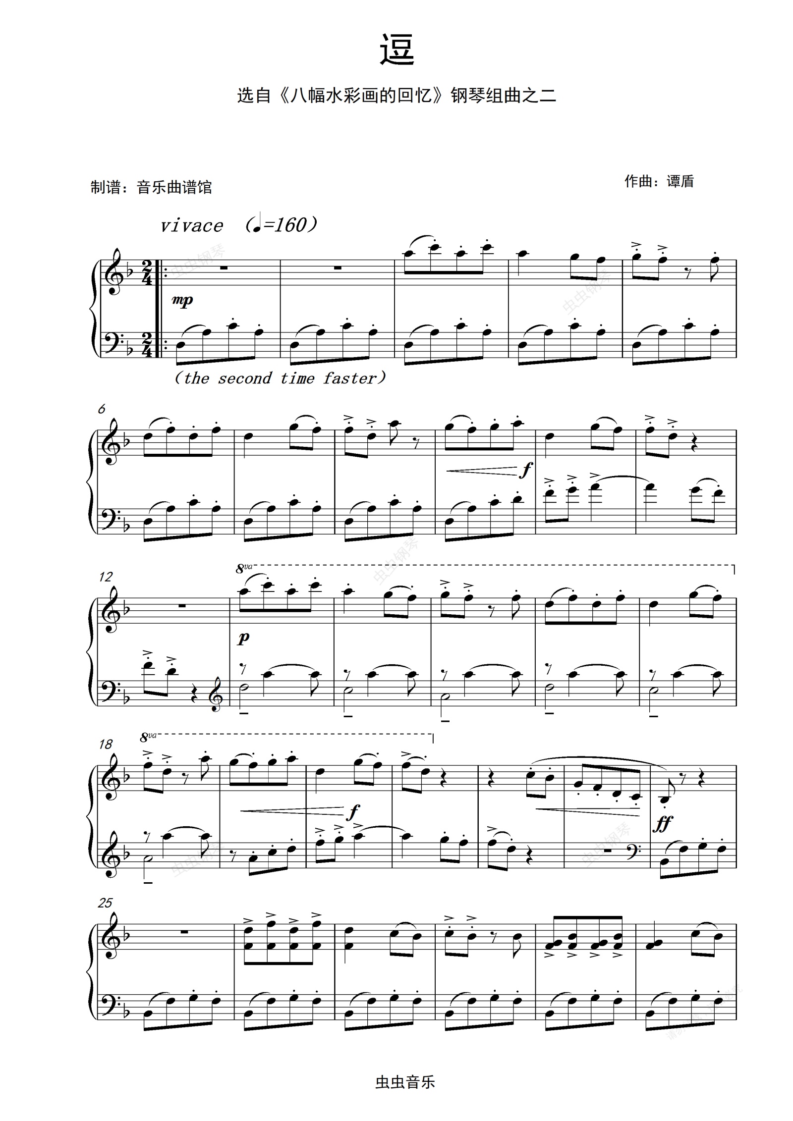 逗-谭盾 选自《八幅水彩画的回忆》钢琴组曲之二(中国钢琴曲精选)