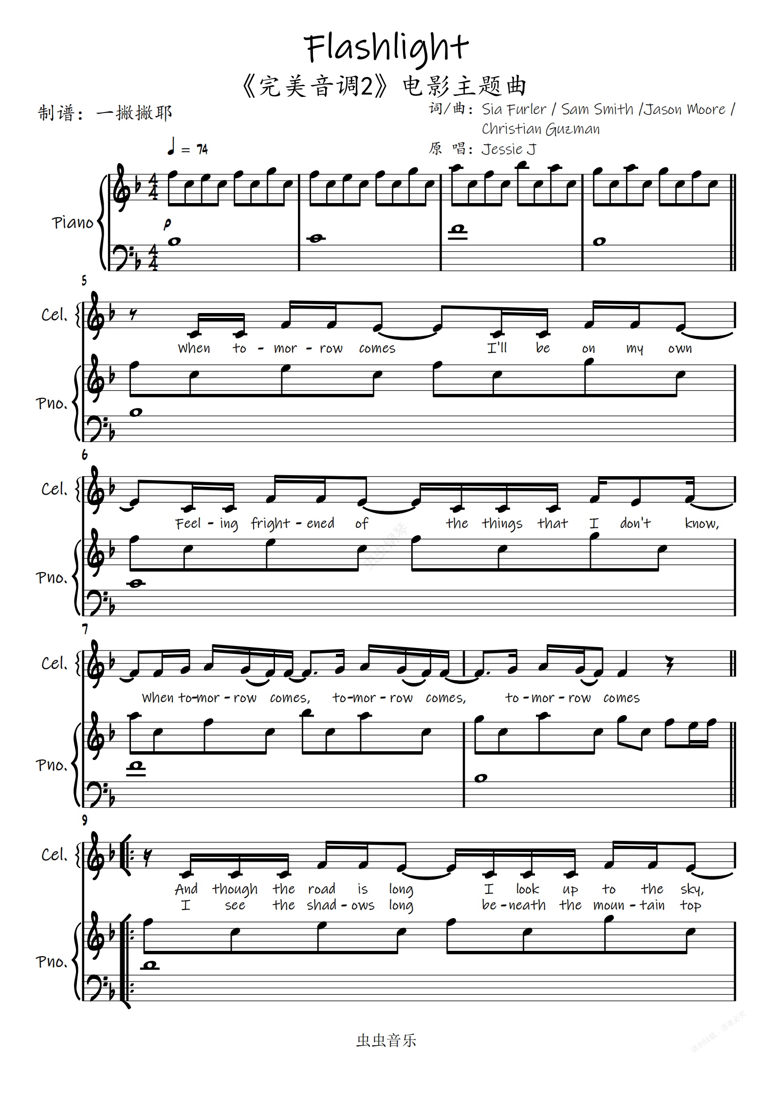 钢琴谱:Flashlight【弹唱谱】Jessie J结石姐《完美音调2》「一撇撇耶」