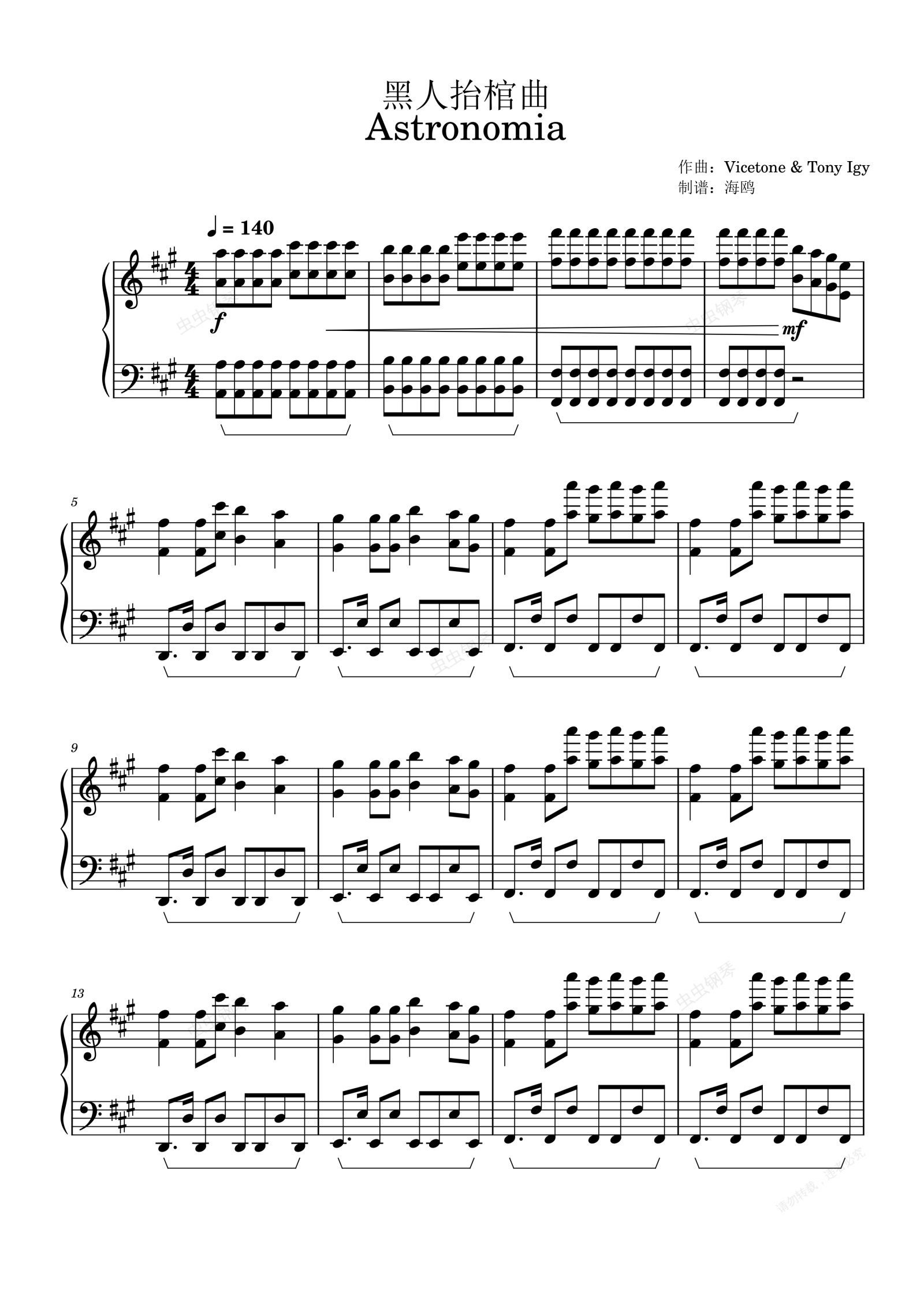 钢琴谱:Astronomia黑人抬棺百分百专业版
