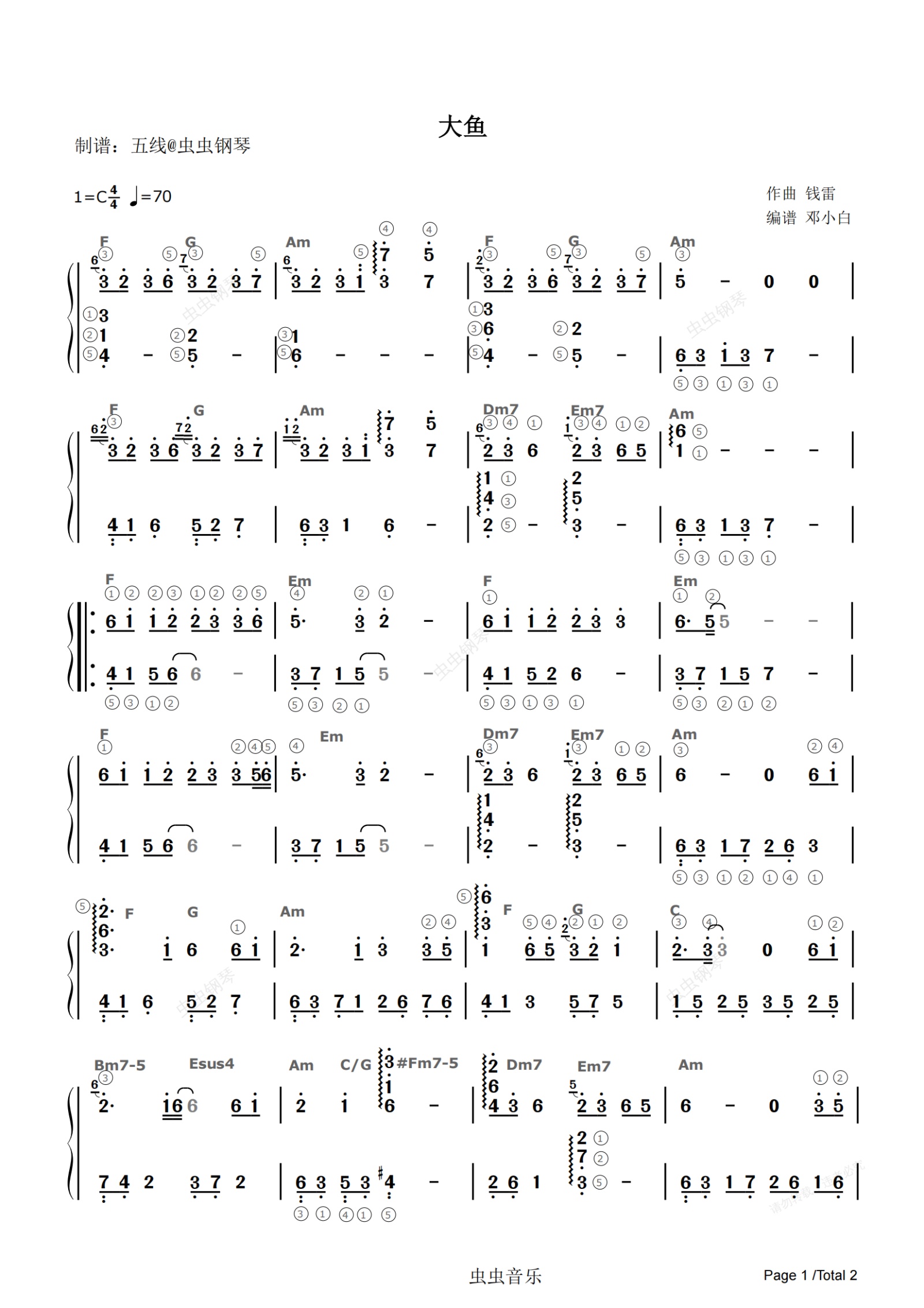 钢琴谱:大鱼-C调简谱