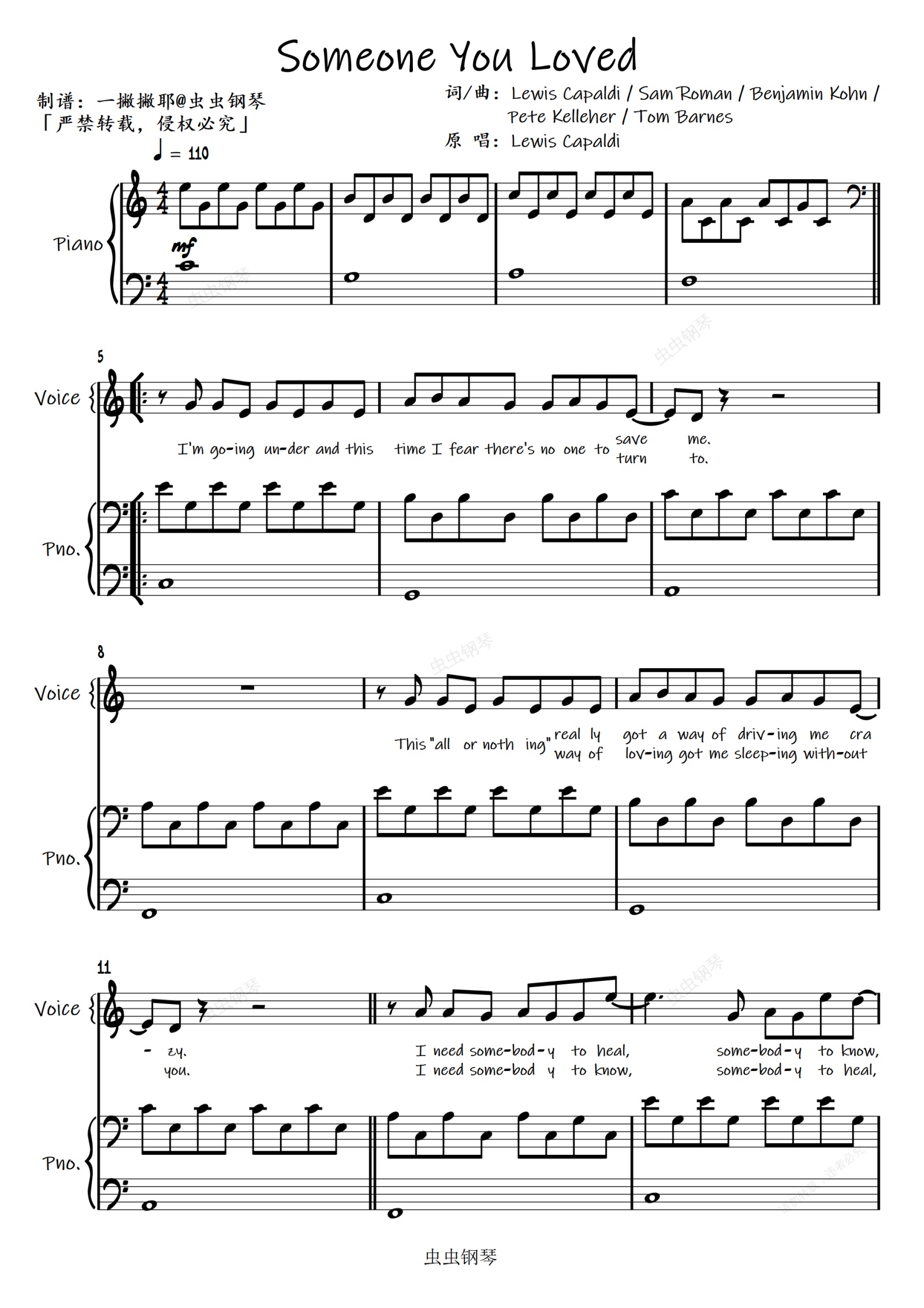 钢琴谱:【C调弹唱谱】Someone You Loved-Lewis Capaldi「一撇撇耶」