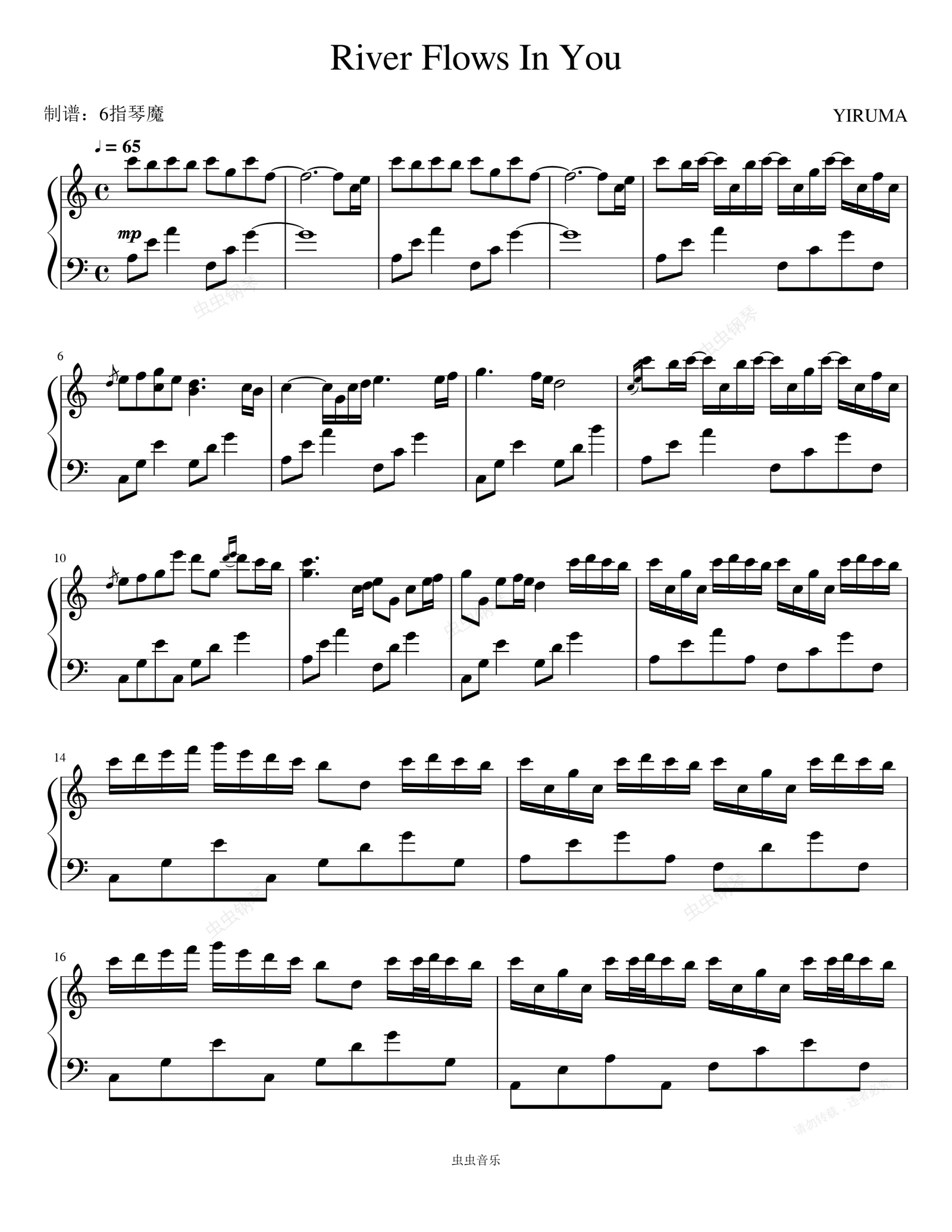 钢琴谱:River Flows In You《你的心河(C调)》——超级好听系列