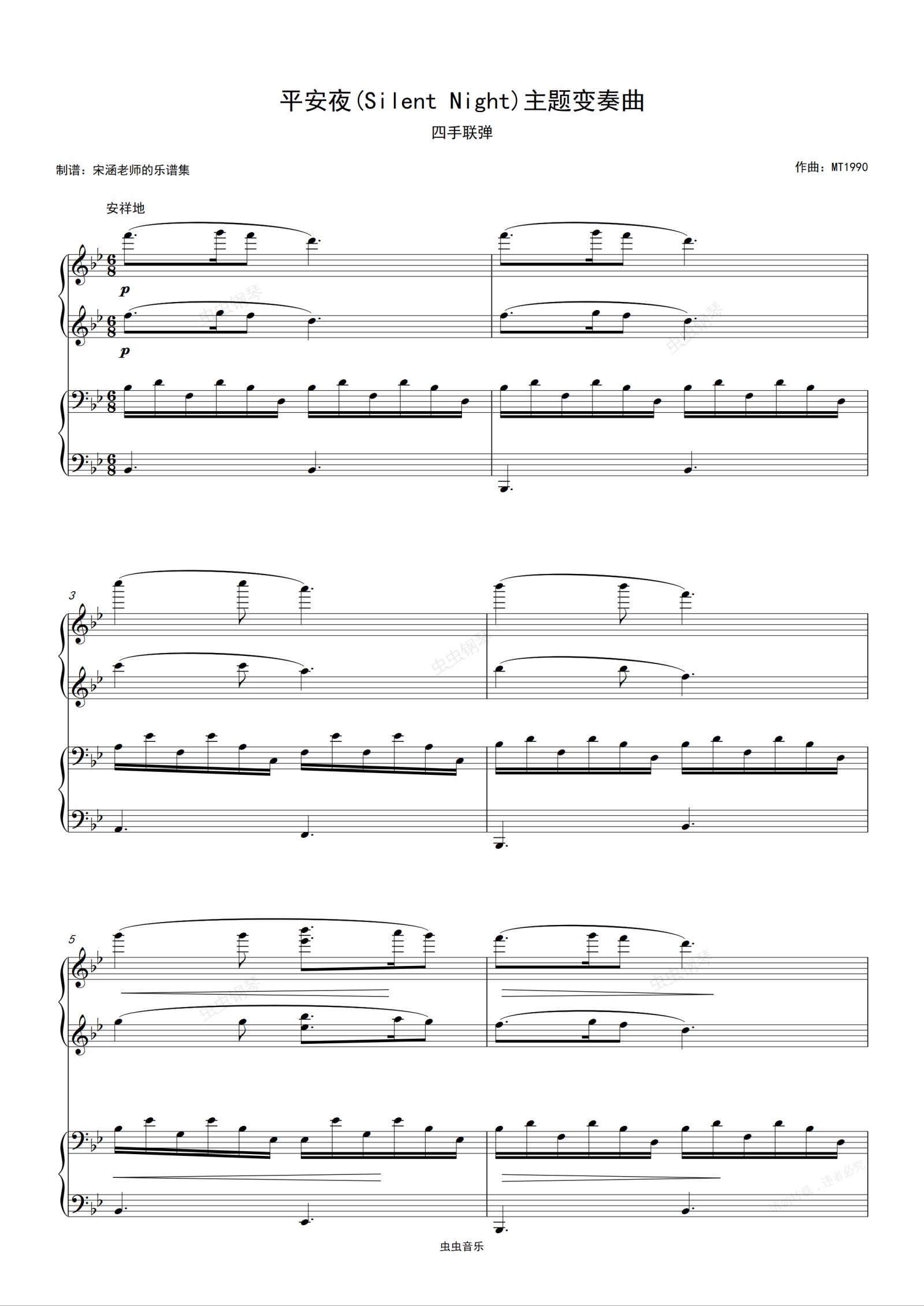钢琴谱:平安夜主题变奏曲-四手联弹
