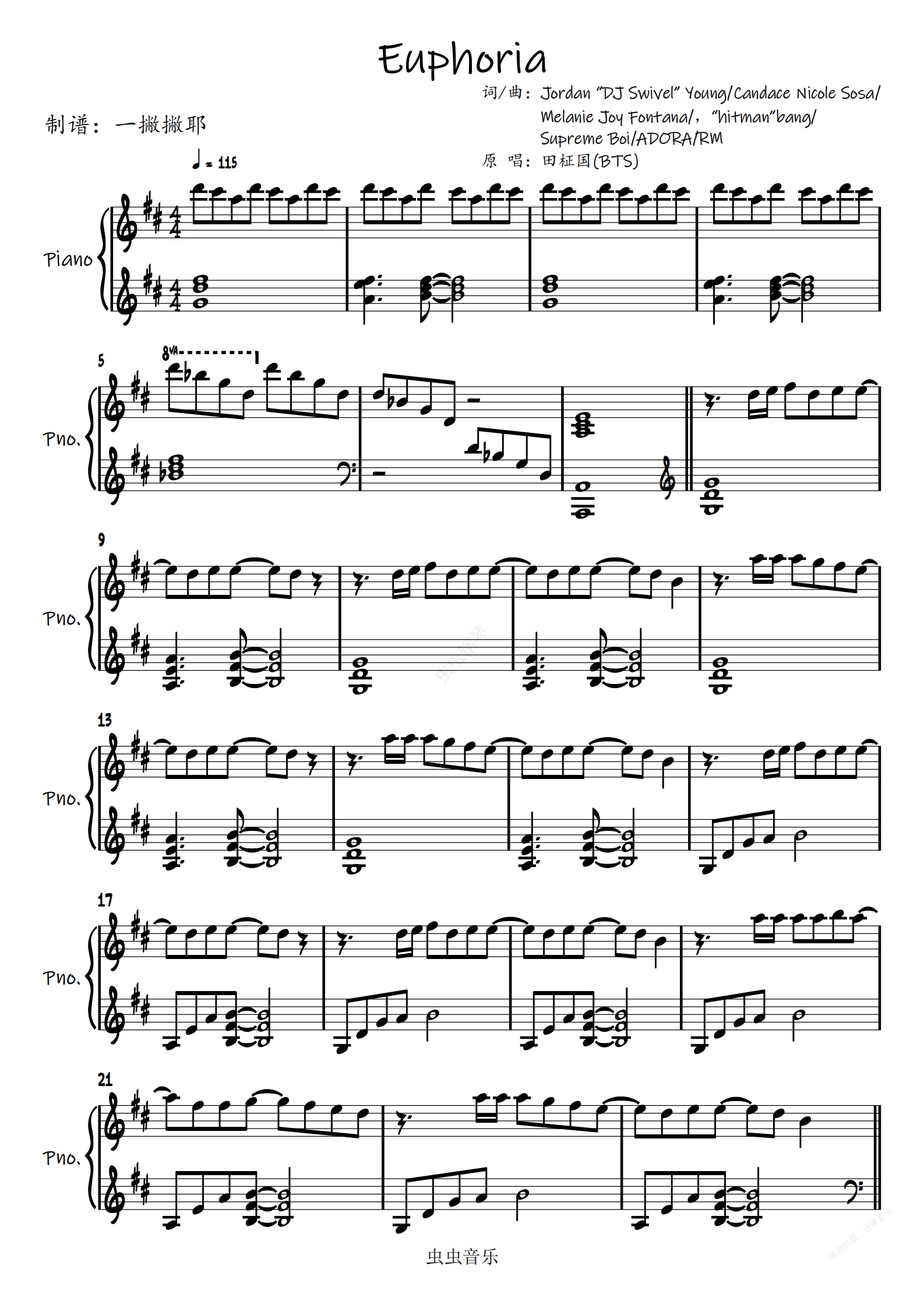 钢琴谱:Euphoria【独奏谱】田柾国(BTS防弹少年团)「一撇撇耶」