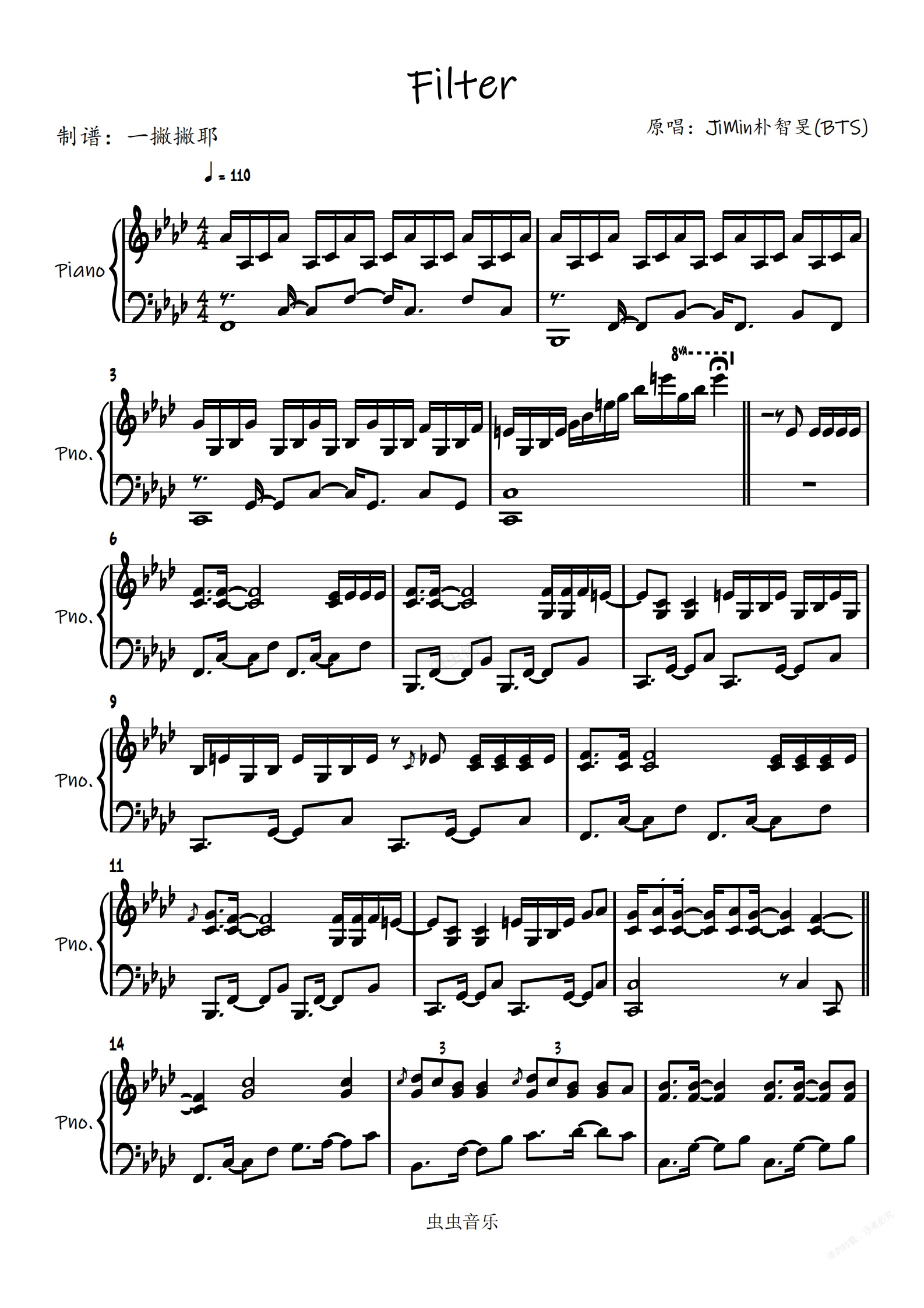 钢琴谱:Filter【独奏谱】JiMin朴智旻(BTS防弹少年团)「一撇撇耶」
