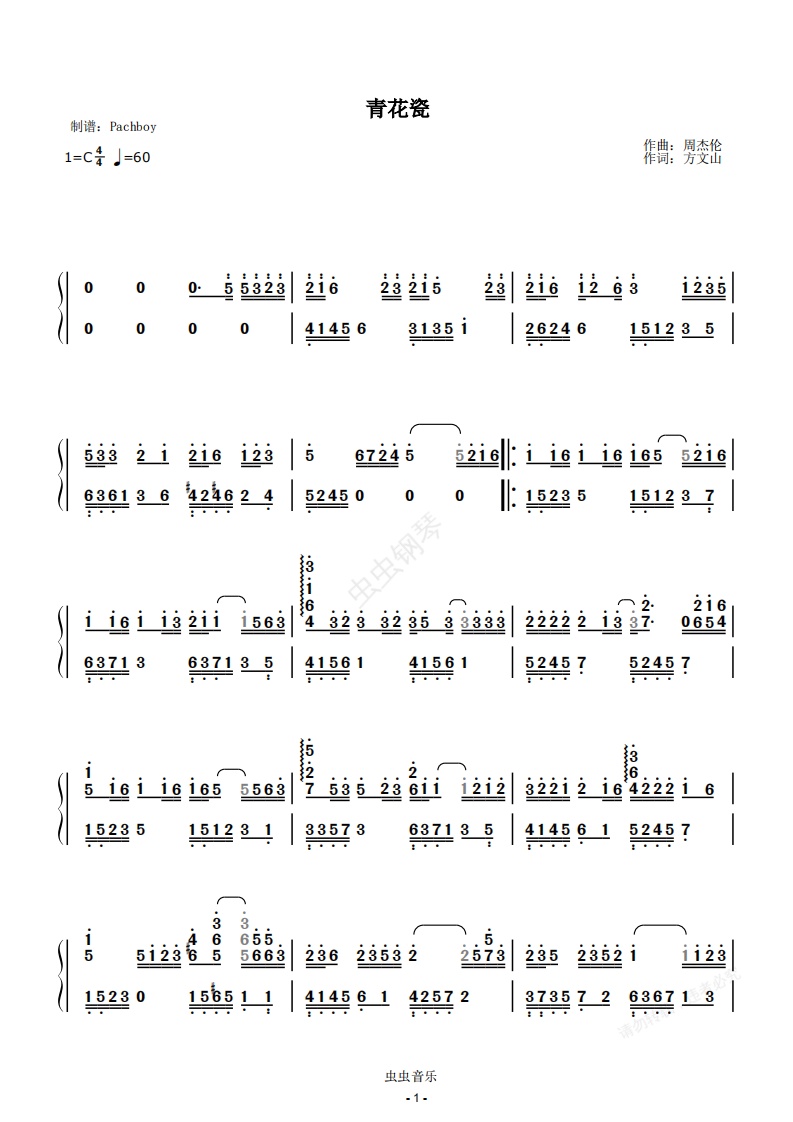 钢琴谱:青花瓷【简谱定制】周杰伦