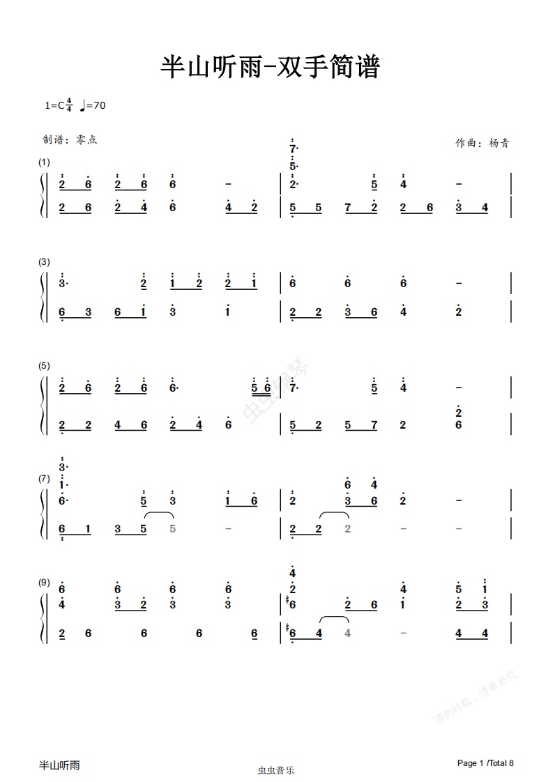 钢琴谱:半山听雨-双手简谱