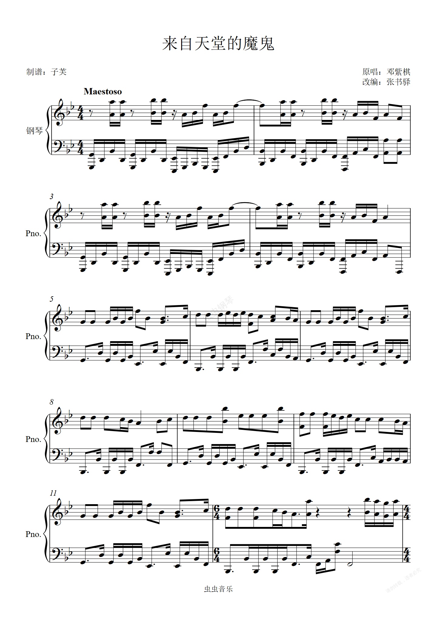 钢琴谱:来自天堂的魔鬼-G.E.M.邓紫棋-钢琴独奏版
