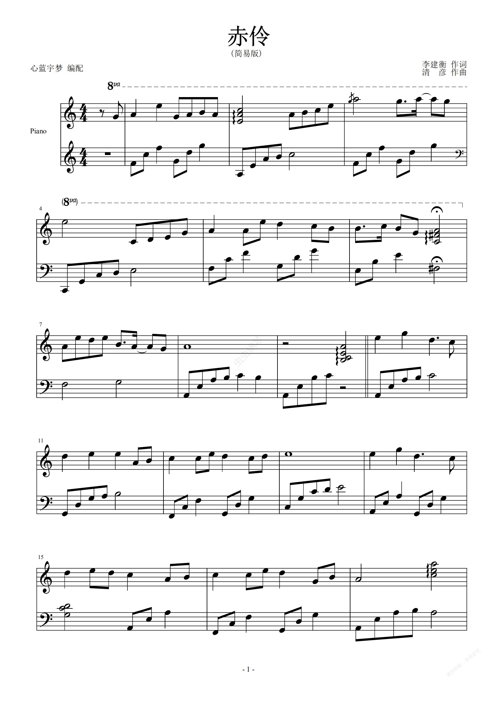 钢琴谱:赤伶-HITA 简易C调柔美版