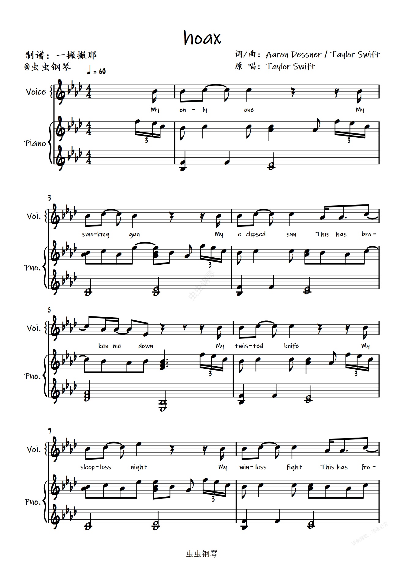 钢琴谱:hoax【弹唱谱】Taylor Swift泰勒·斯威夫特∣霉霉folklore「一撇撇耶」