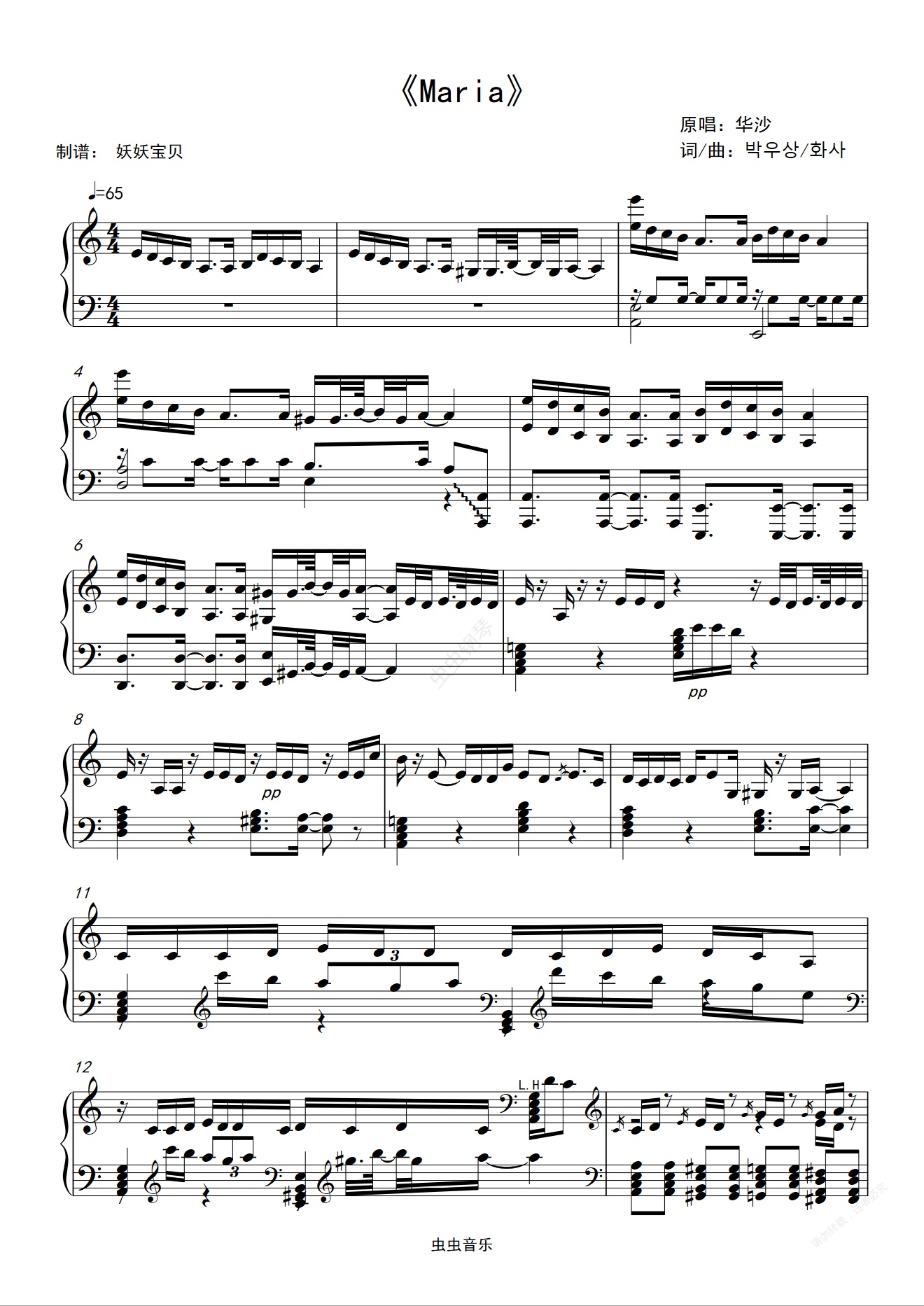 钢琴谱:华莎《Maria》(妖妖宝贝版)