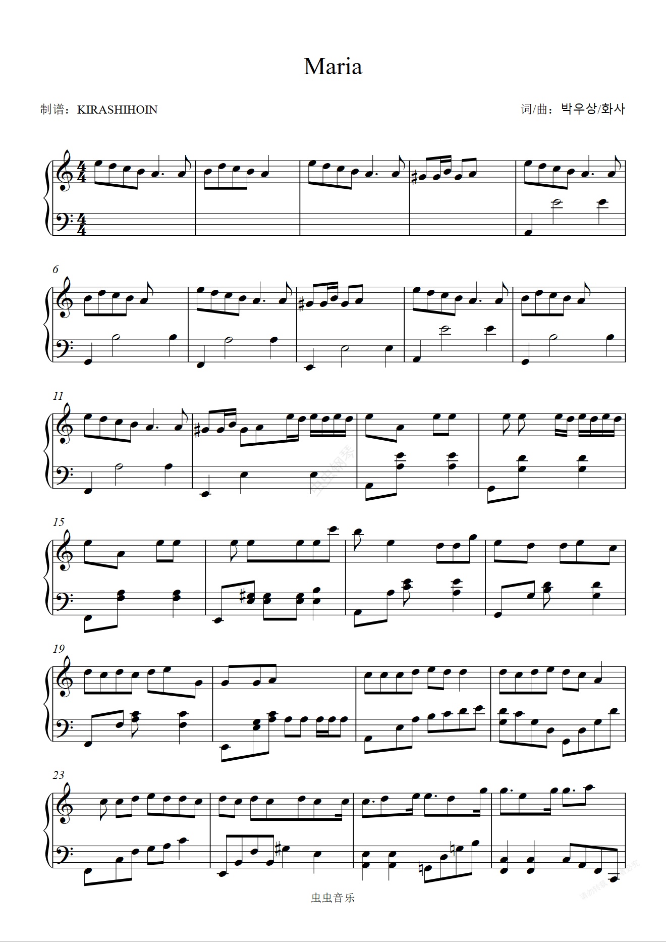 钢琴谱:Maria