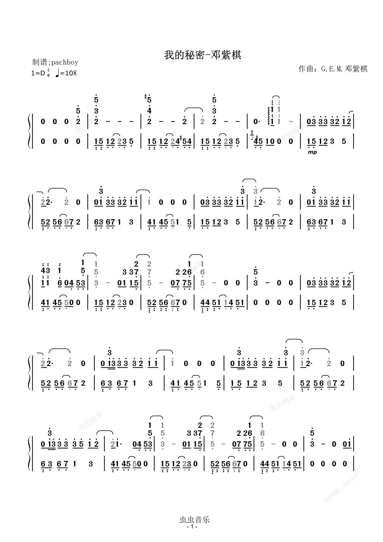 钢琴谱:我的秘密【双手简谱】G.E.M.邓紫棋