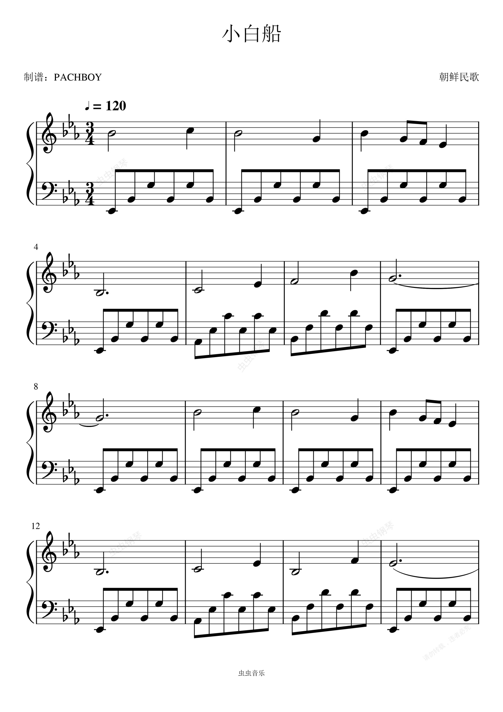 钢琴谱:小白船-朝鲜民歌 尹克荣