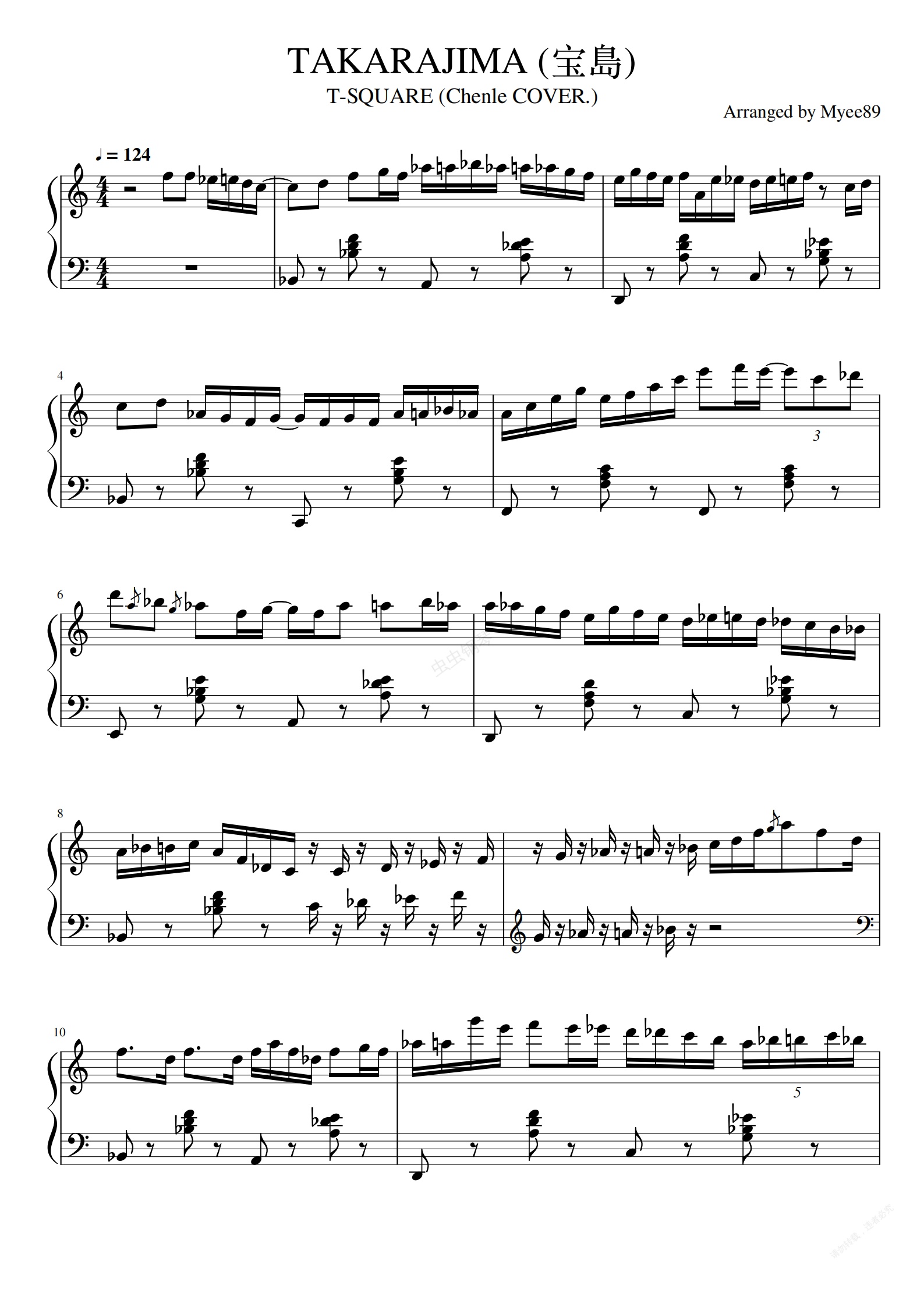 T-SQUARE (辰乐翻弹) - TAKARAJIMA (宝島) 钢琴谱