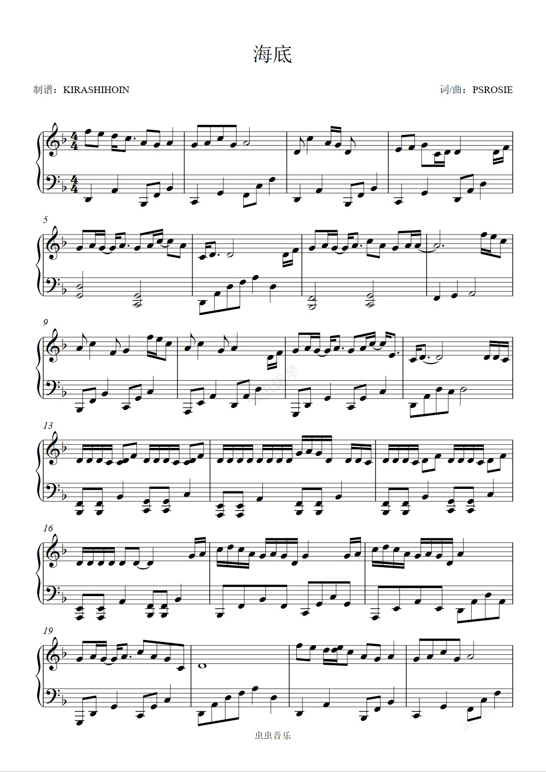 钢琴谱:海底-简单版