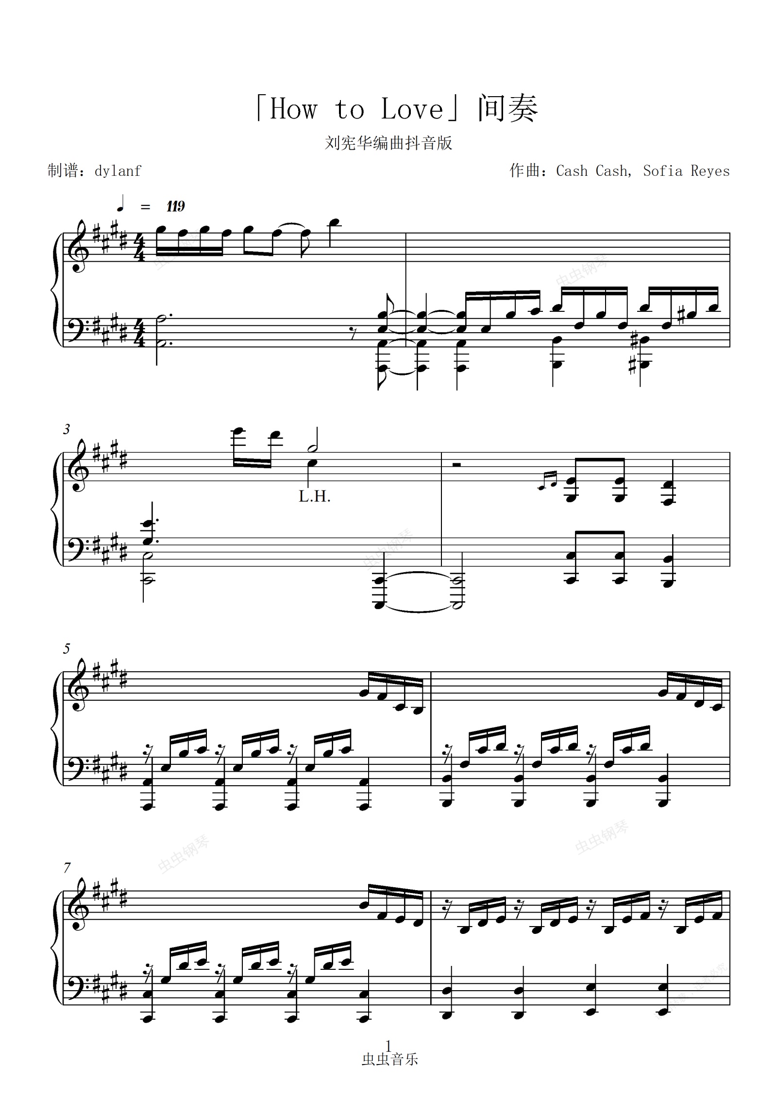 钢琴谱:How to Love间奏抖音版 刘宪华