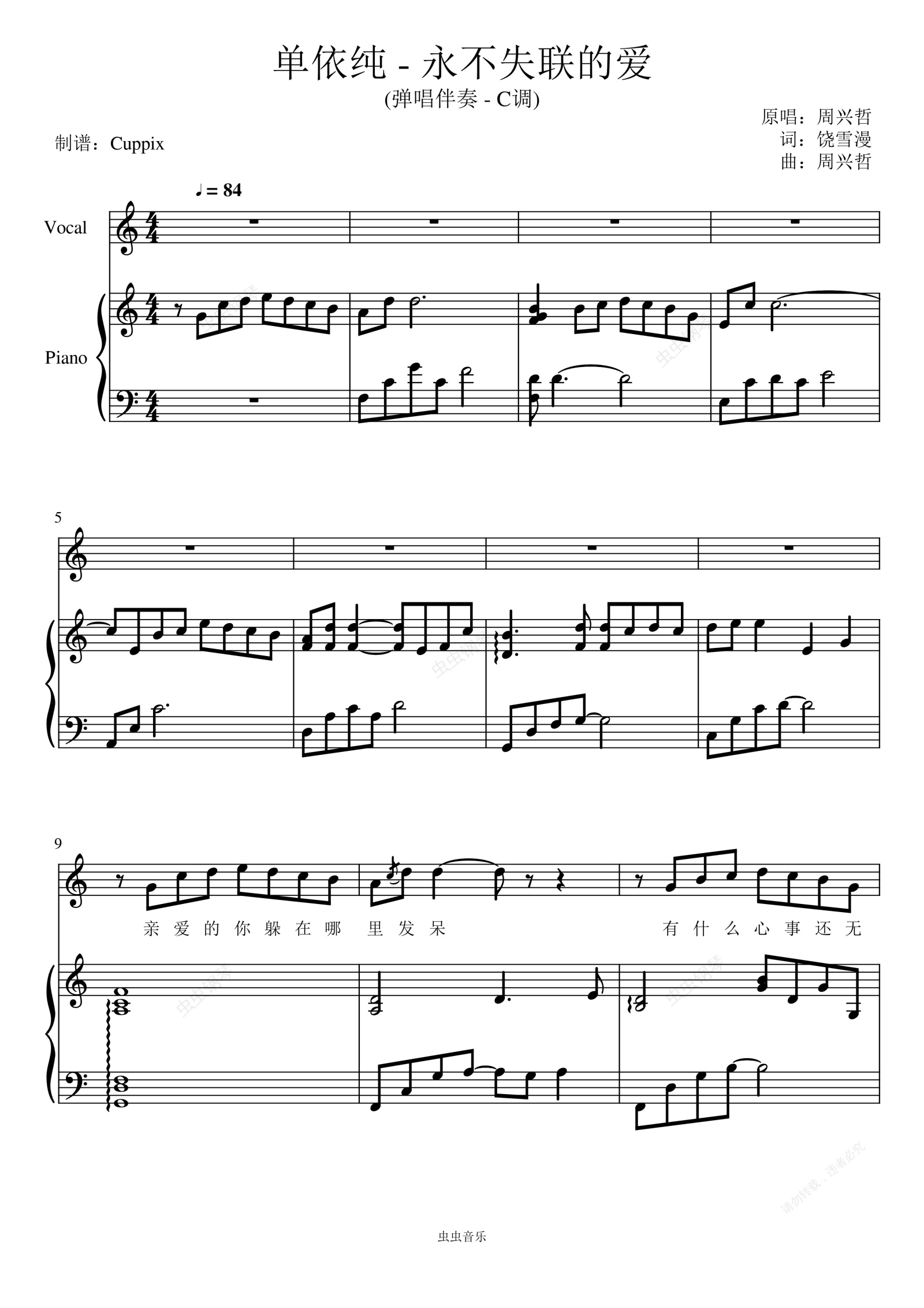 钢琴谱:单依纯《永不失联的爱》高度还原 弹唱伴奏附词-C调(2020中国好声音)