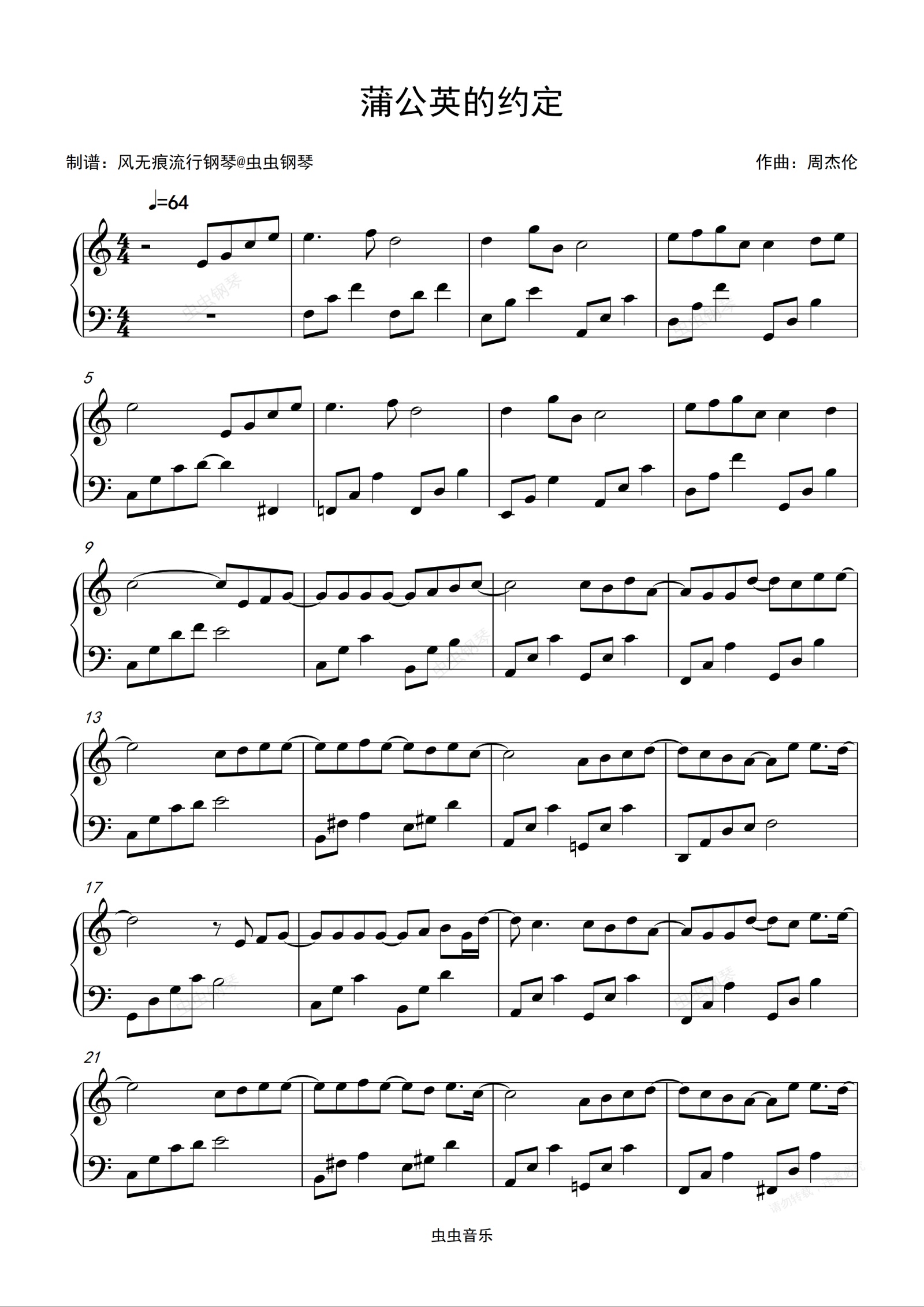 钢琴谱:蒲公英的约定-周杰伦〖简易动听〗