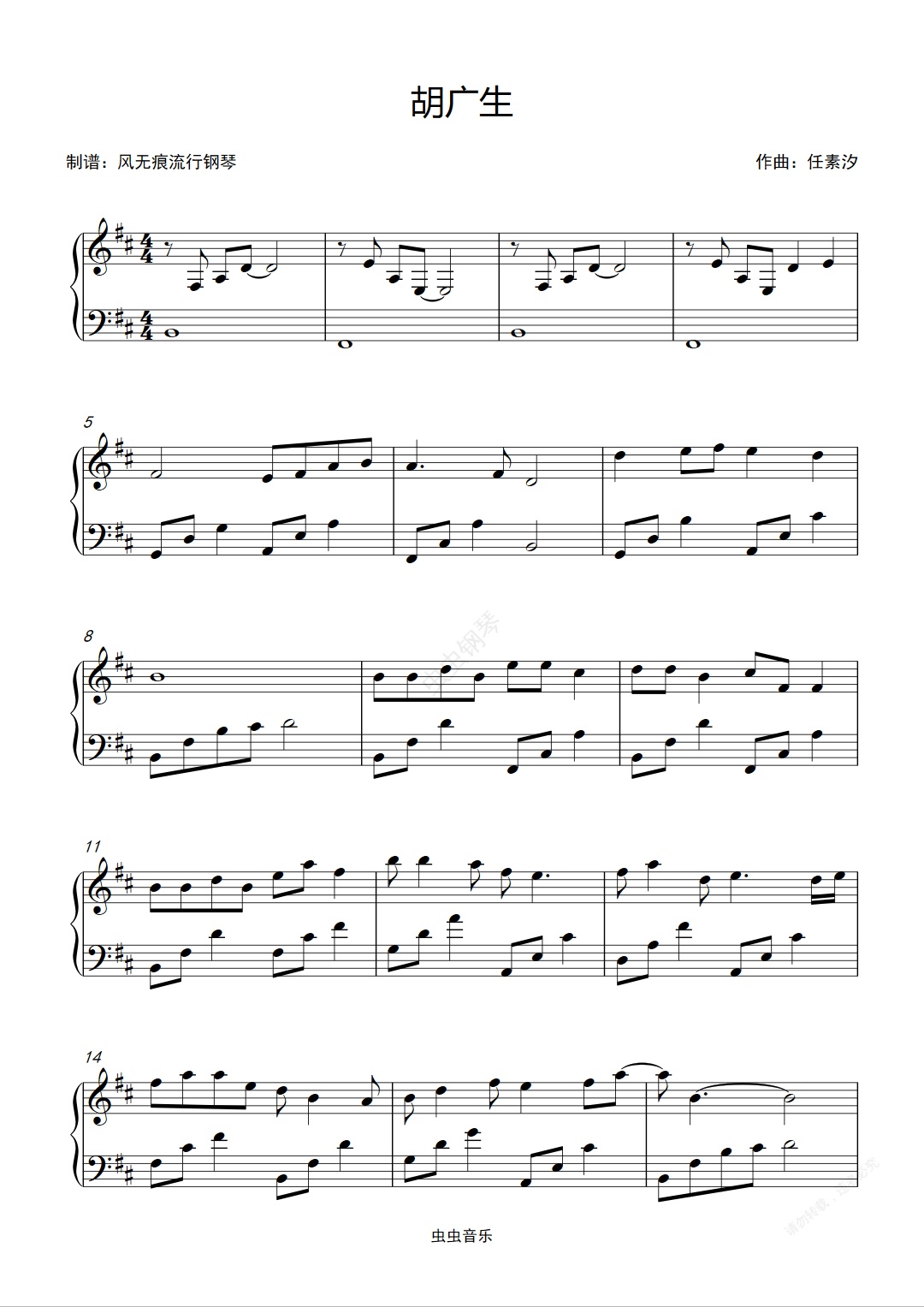钢琴谱:胡广生-任素汐〖简易动听〗