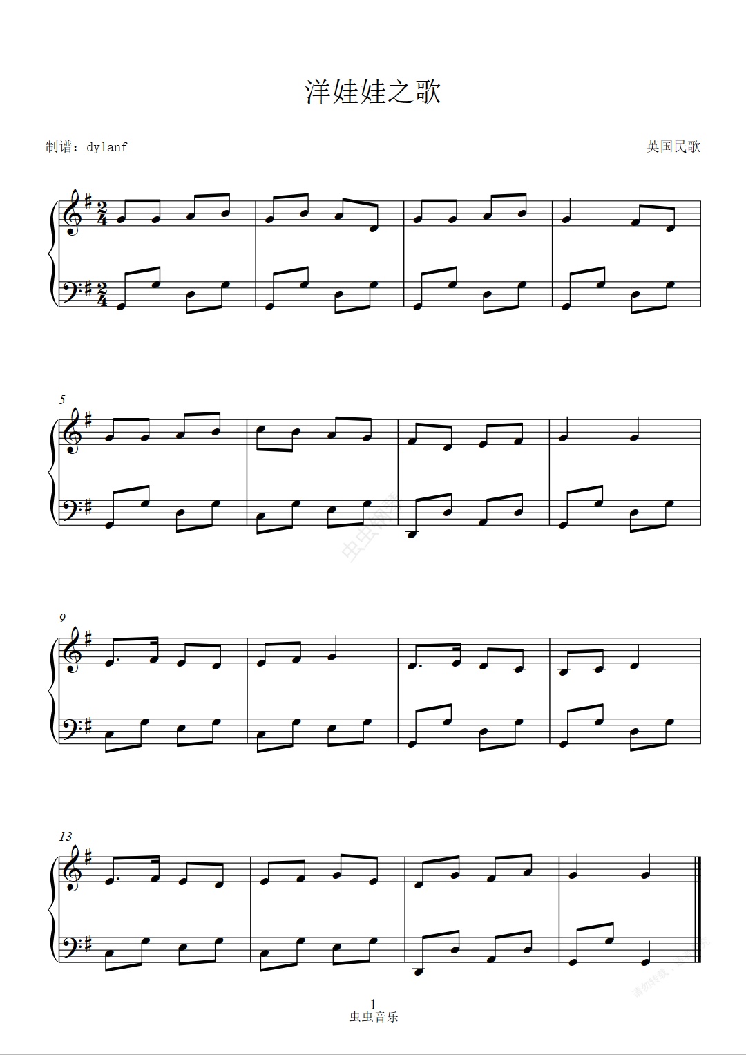 钢琴谱:洋娃娃之歌 经典儿歌 琴童专用