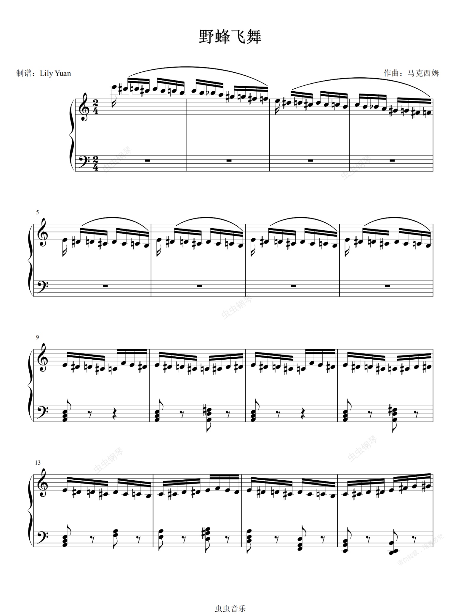 钢琴谱:野蜂飞舞(简易版)(LY)