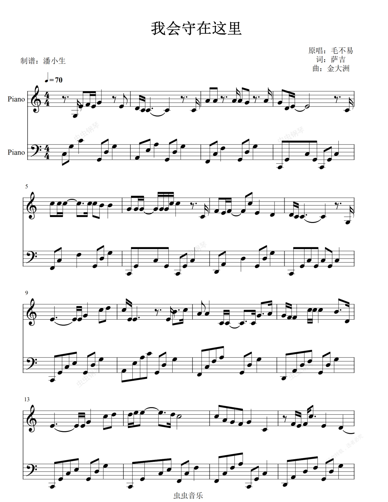钢琴谱:我会守在这里 《以家人之名》片尾曲 毛不易 C调 简化版