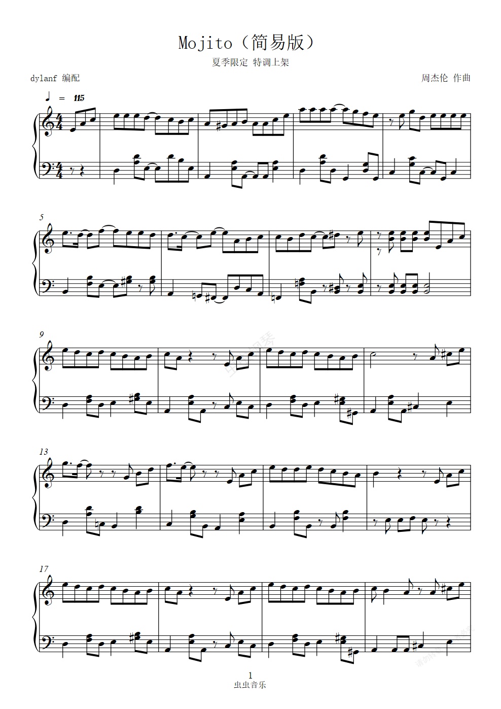 钢琴谱:易弹版Mojito周杰伦 好听还原 dylanf编配