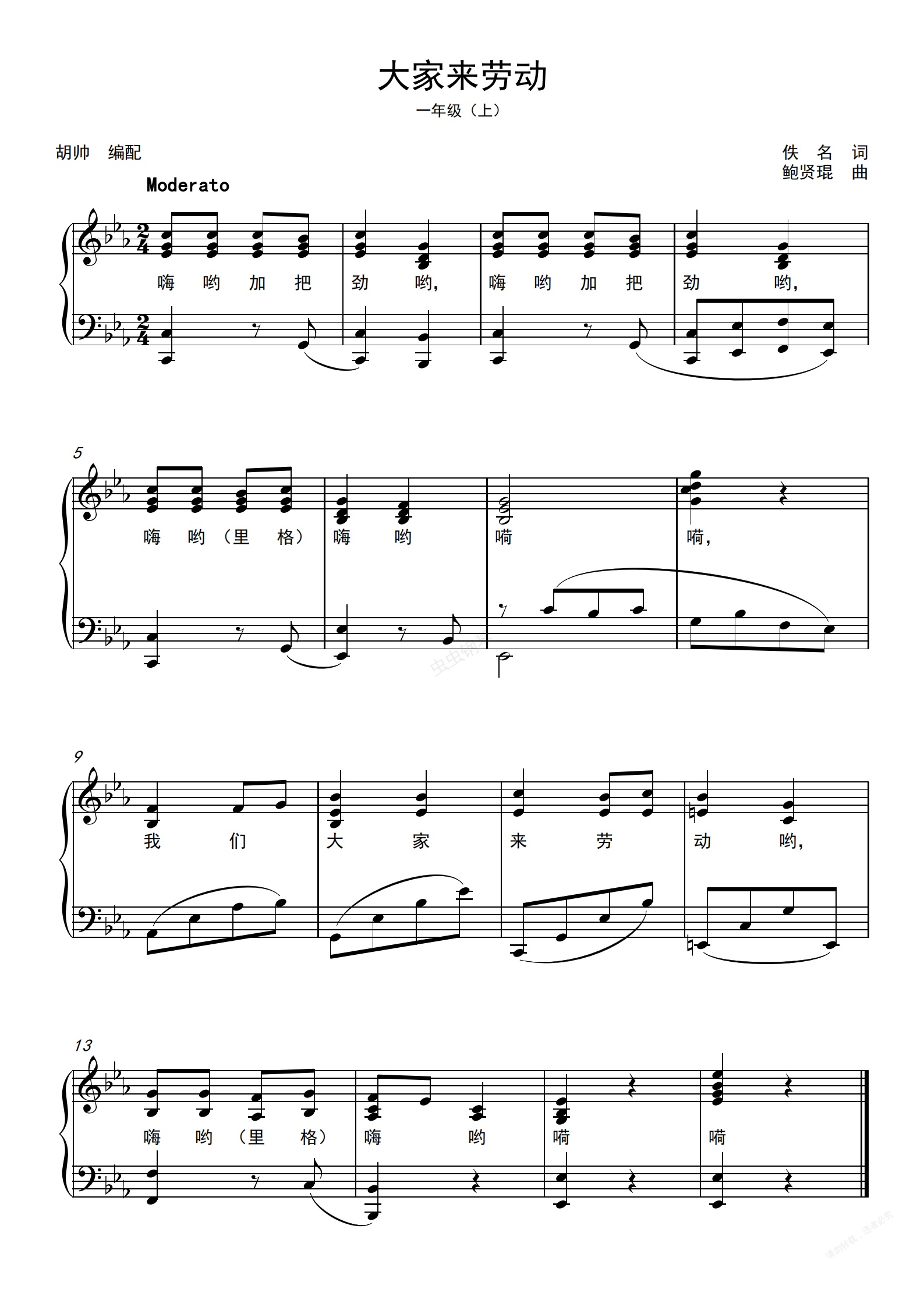 钢琴谱:大家来劳动【人音版一年级】