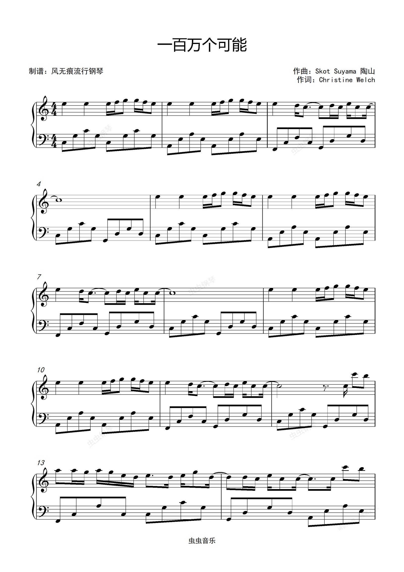 钢琴谱:一百万个可能-克丽丝叮〖简易动听〗
