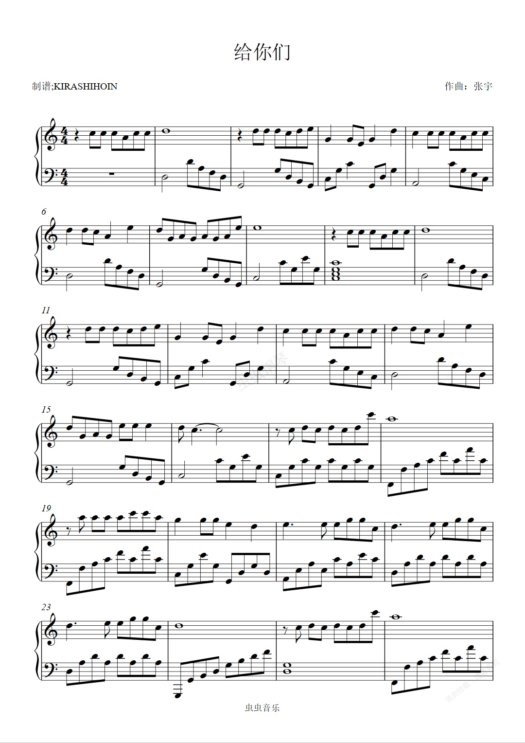 钢琴谱:给你们
