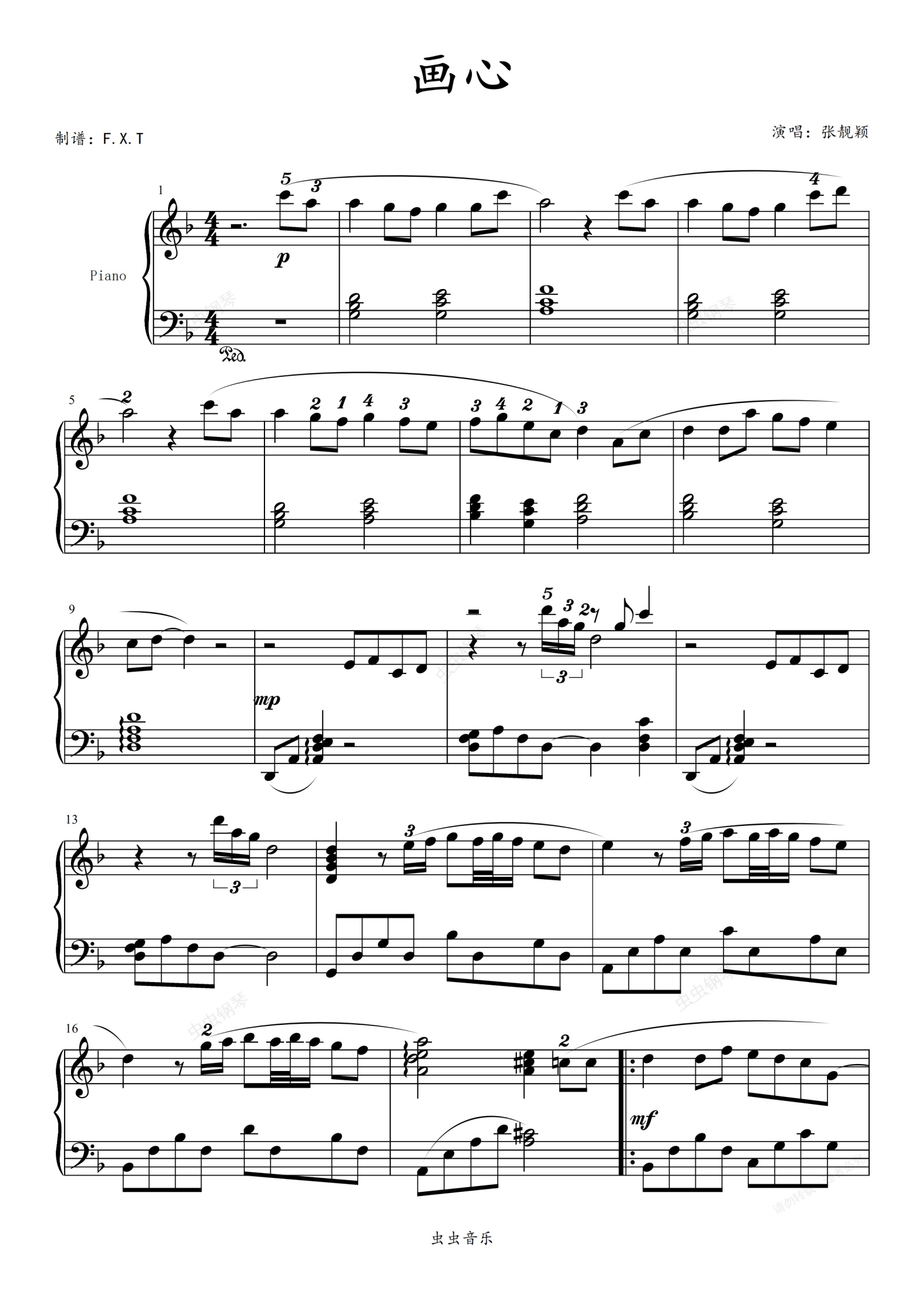 钢琴谱:画心(带指法简单好听版)