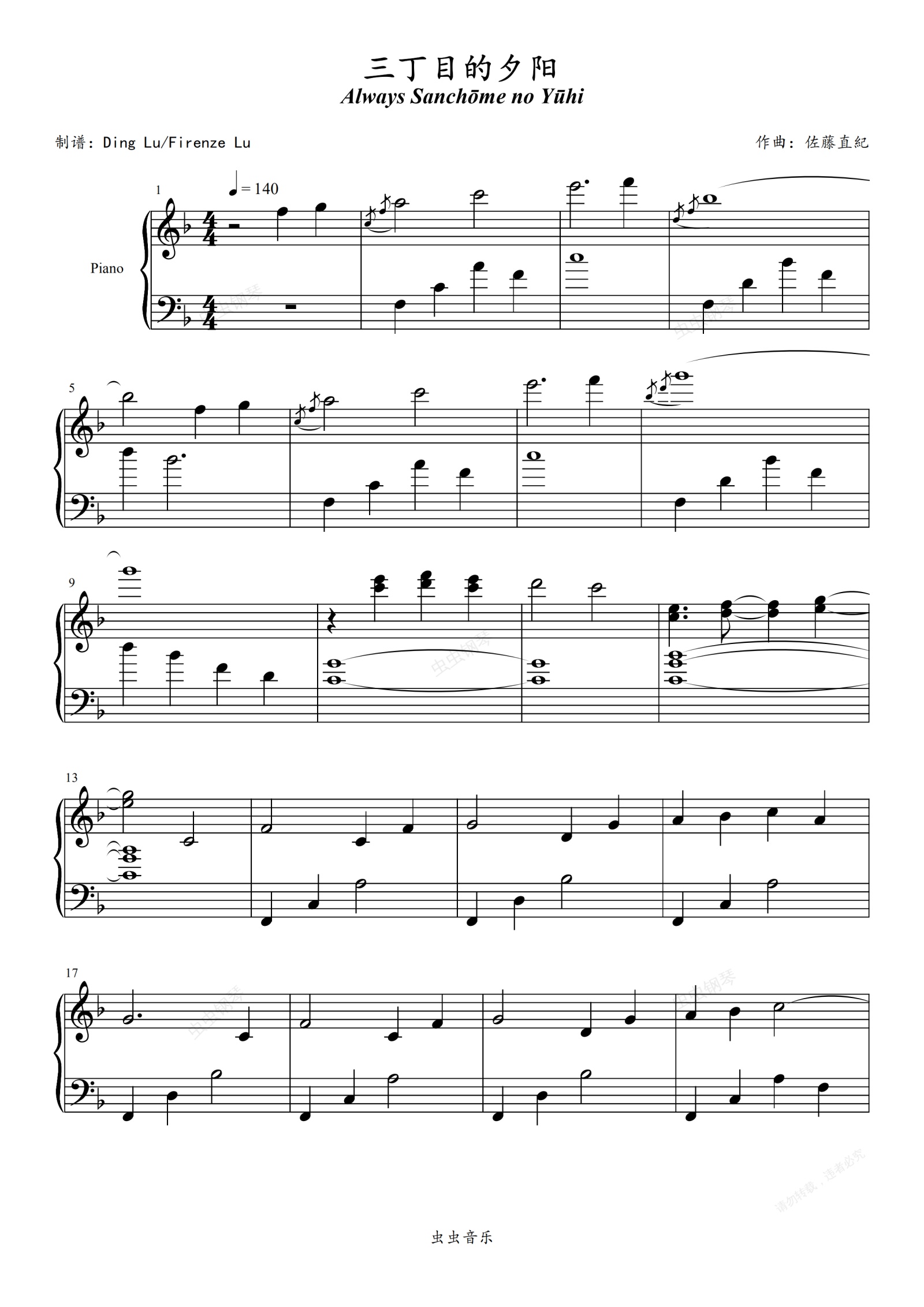 钢琴谱:三丁目的夕阳 (同名电影主题曲)